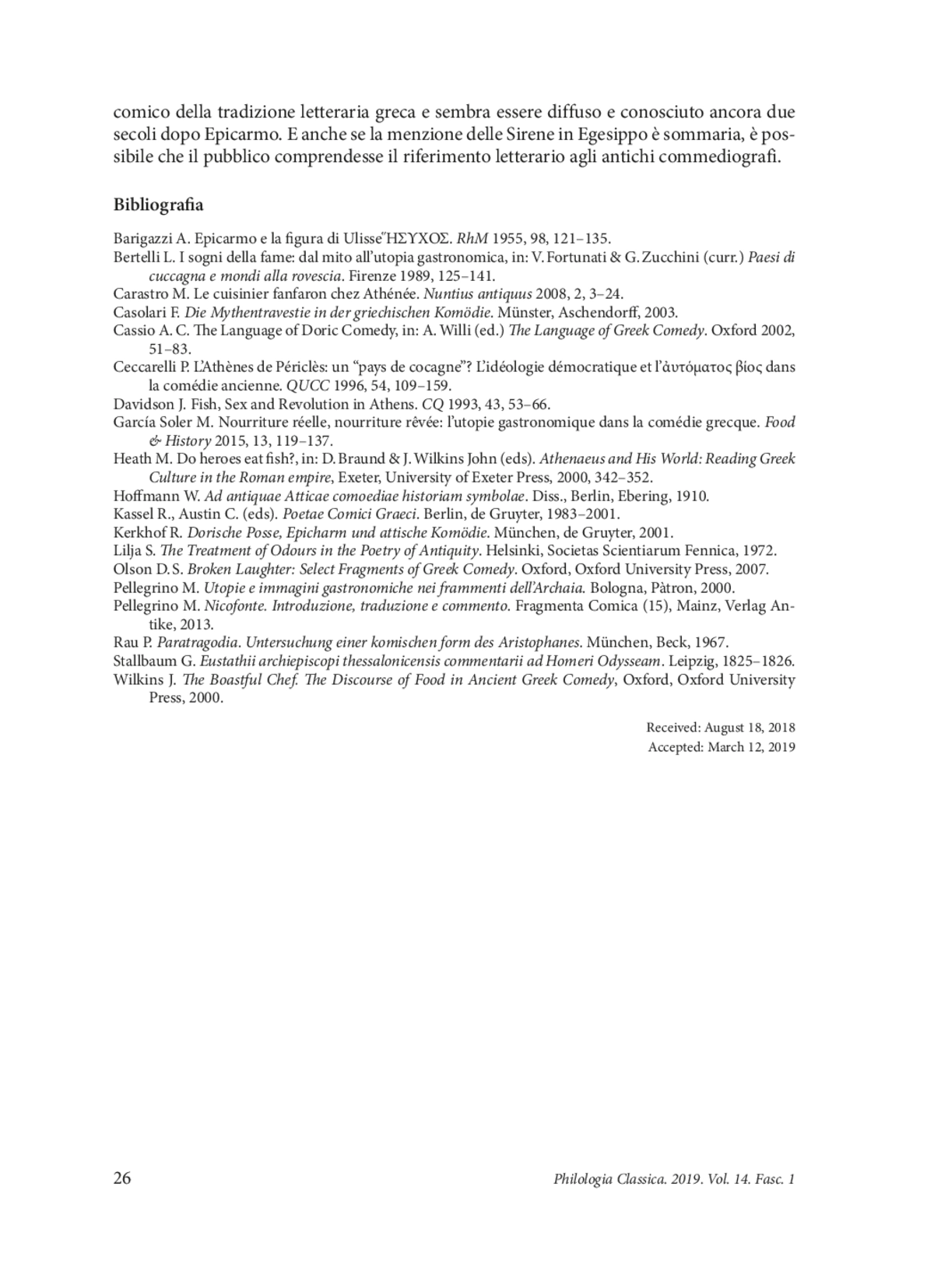 16. Pellegrino M. Nicofonte. Introduzione, traduzione e commento. Fragmenta Comica (15), Mainz, Verlag Antike, 2013.