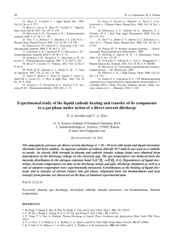 Сироткин Н. А., Титов В. А. Экспериментальное исследование нагрева жидкого катода и переноса его компонентов в газовую фазу под действием разряда постоянного тока 25