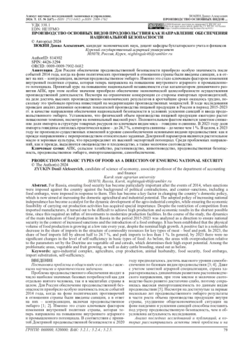 5. Гончарова О.Ю., Чернушкова К.Г. Продовольственная безопасность современной России: проблемы и пути их решения // Вестник евразийской науки. 2022. Т. 14. № 5. EDN: OQBLTG