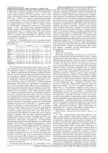 8. Зюкин Д.А., Сергеева Н.М., Беляев С.А., Иванова Ю.А. Состояние продовольственной безопасности России в контексте самообеспечения ключевыми видами продуктов // Вестник НГИЭИ. 2023. № 4 (143). С. 99-111. EDN: RBENOW