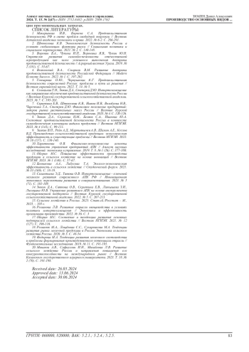 13. Силантьева Э.Д., Титова О.В. Импортозамещение - ключевой механизм развития современного АПК РФ // Инновационная экономика: перспективы развития и совершенствования. 2023. № 5 (71). С. 101-108. EDN: QKIQFP
