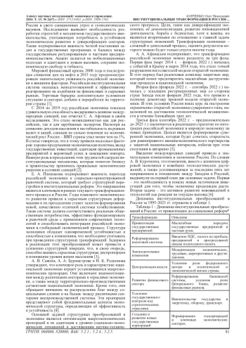 Последние десятилетия в России характеризуются глубокими и многоаспектными институциональными трансформациями, которые оказали значительное влияние на экономическое развитие и общественное устройство страны.