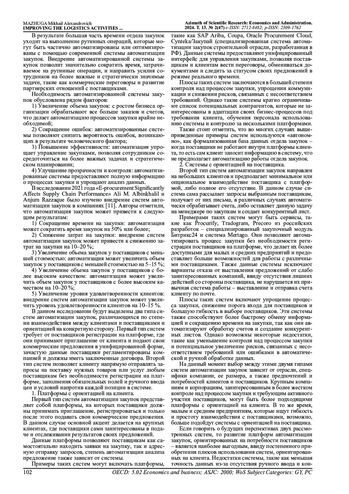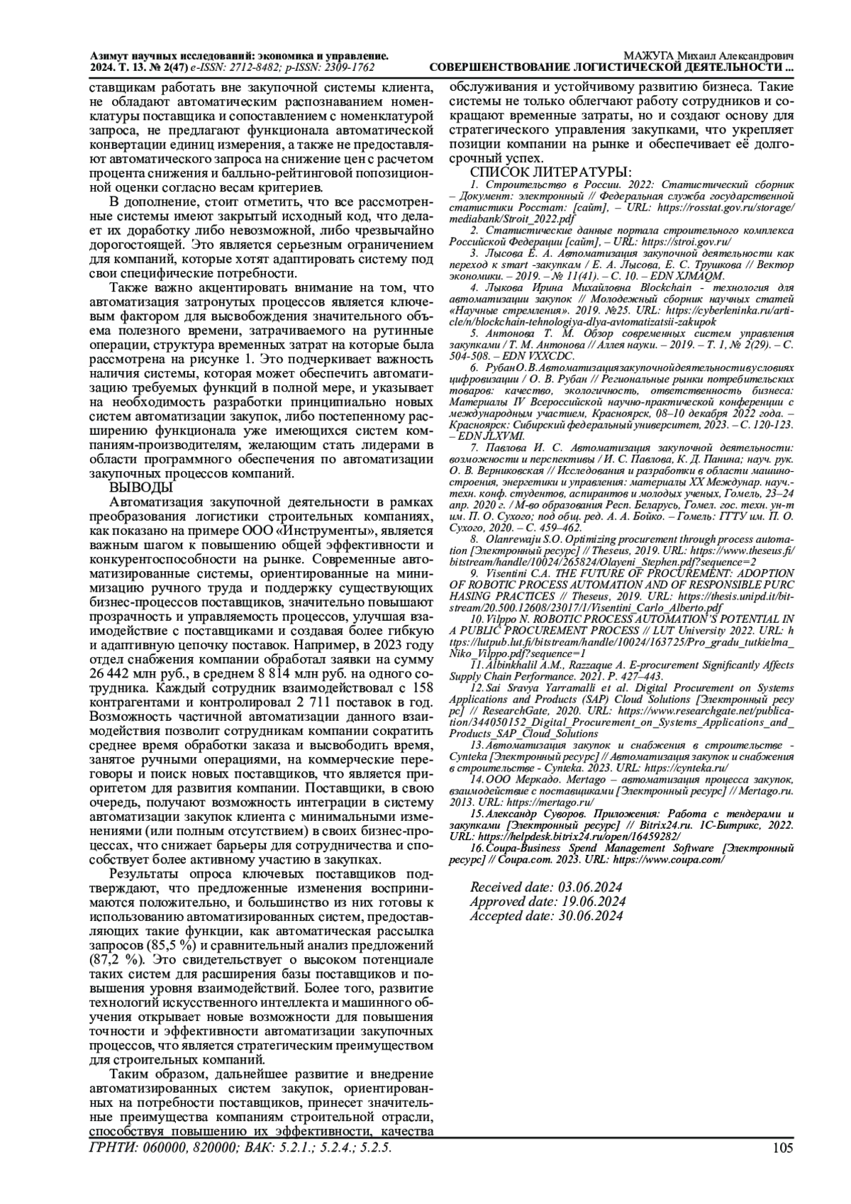 3. Лысова, Е. А. Автоматизация закупочной деятельности как переход к smart -закупкам / Е. А. Лысова, Е. С. Трушкова // Вектор экономики. - 2019. - № 11(41). - С. 10. EDN: XJMAQM