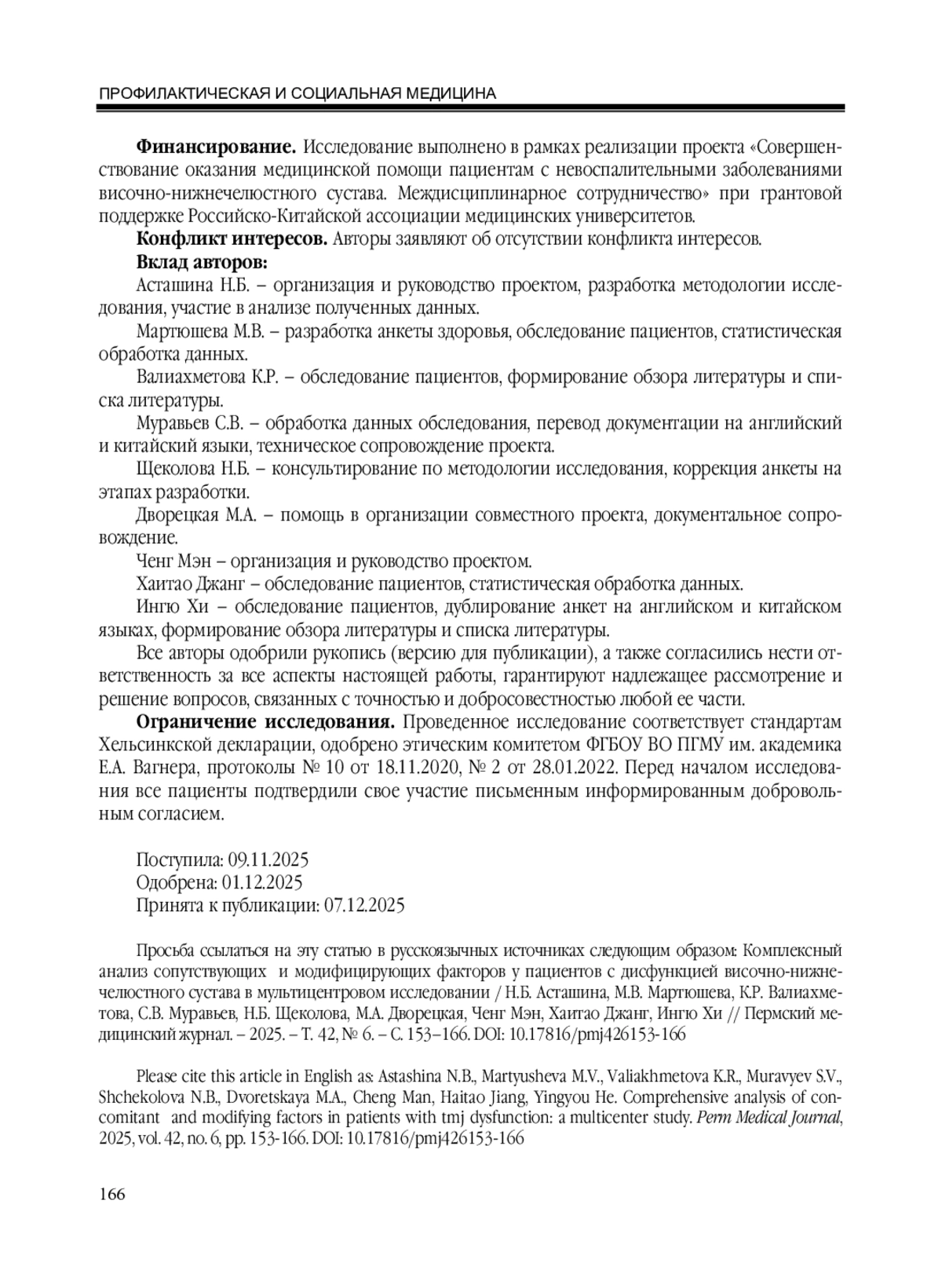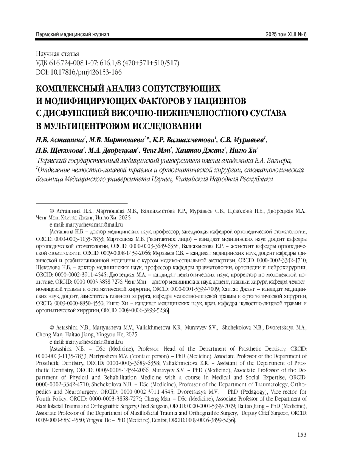 Martyusheva M.V., Astashina N.B., Shchekolova N.B. An interdisciplinary approach to the diagnosis and treatment of patients with a dysfunctional state of the temporomandibular joint. Problems of Dentistry 2023; 3: 114-119. (in Russian). DOI: 10.18481/2077-7566-2023-19-3-114-119