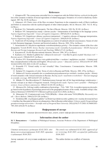 1. Алимпиева Р. В. Синонимический микроряд синий - голубой в сопоставлении с польским blekitny - niebieski (к проблеме семантической эволюции лексических эквивалентов родственных языков) / Семантика слова в диахронии // Межвуз. темат. сб. науч. тр. Калинингр. гос. ун-т. Калининград, 1987. С. 92-99.