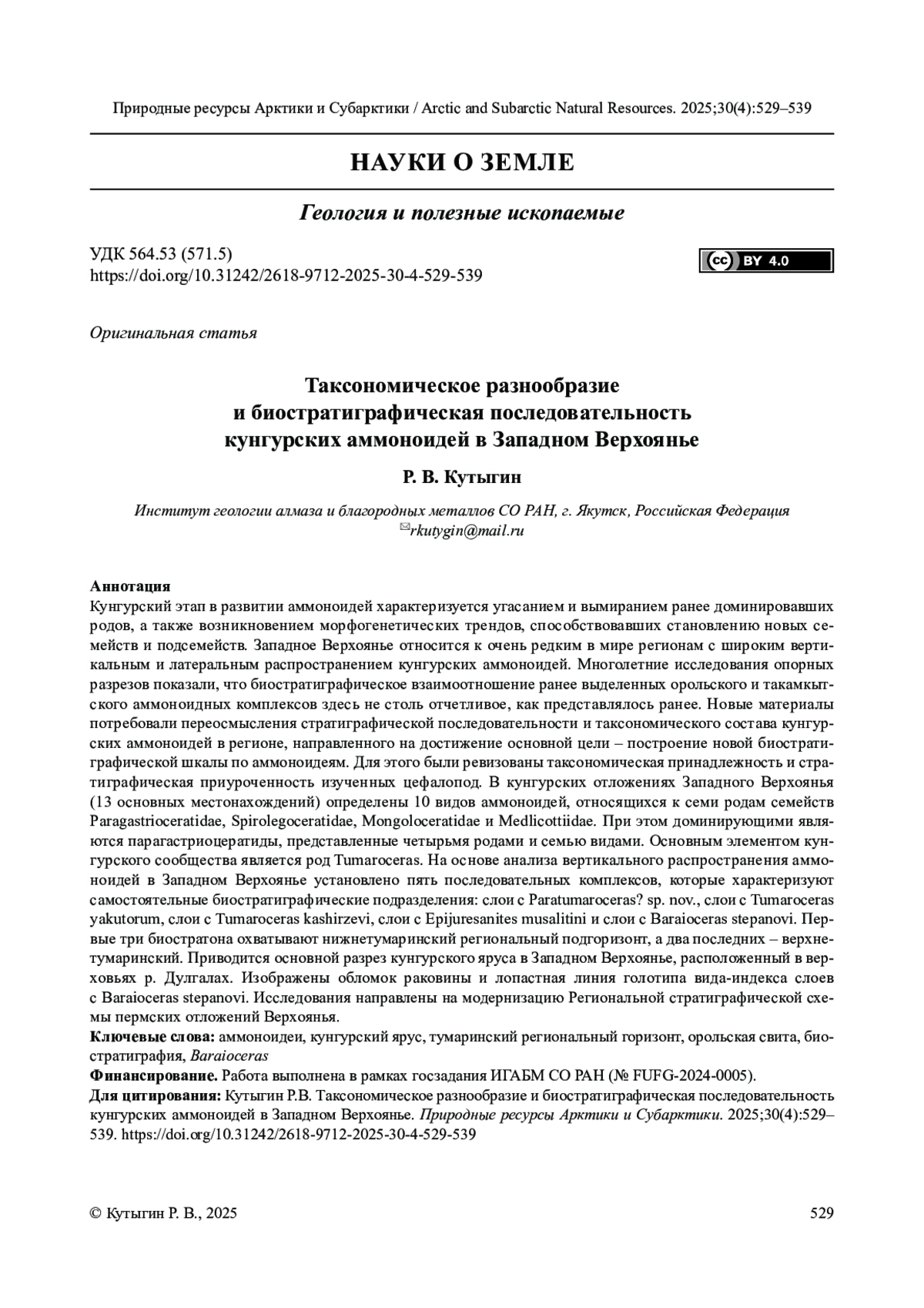 3. Kutygin R.V. Paratumaroceras, a new paragastrioceratid genus (Ammonoidea) from the Lower Permian of the Western Verkhoyansk Region. Paleontological Journal. 2003;37(3): 252-256.