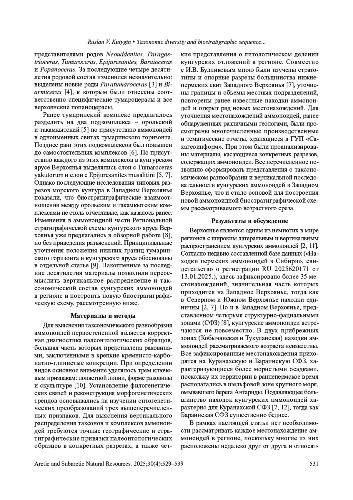 9. Кутыгин Р.В. Проблема обоснования границы артинского и кунгурского ярусов в Западном Верхоянье по аммоноидеям. Природные ресурсы Арктики и Субарктики. 2024;29(3): 335-344. DOI: 10.31242/2618-9712-2024-29-3-335-344