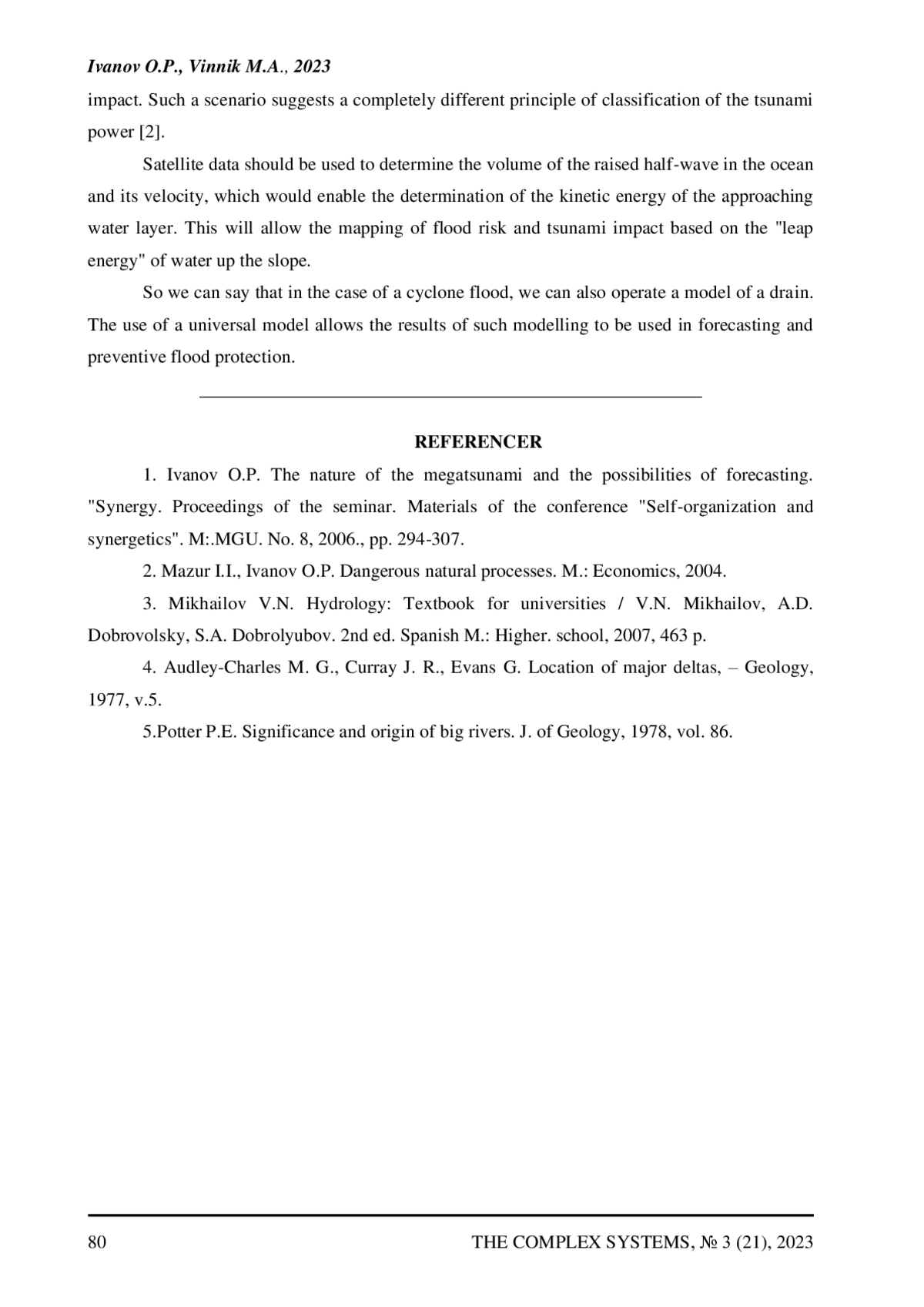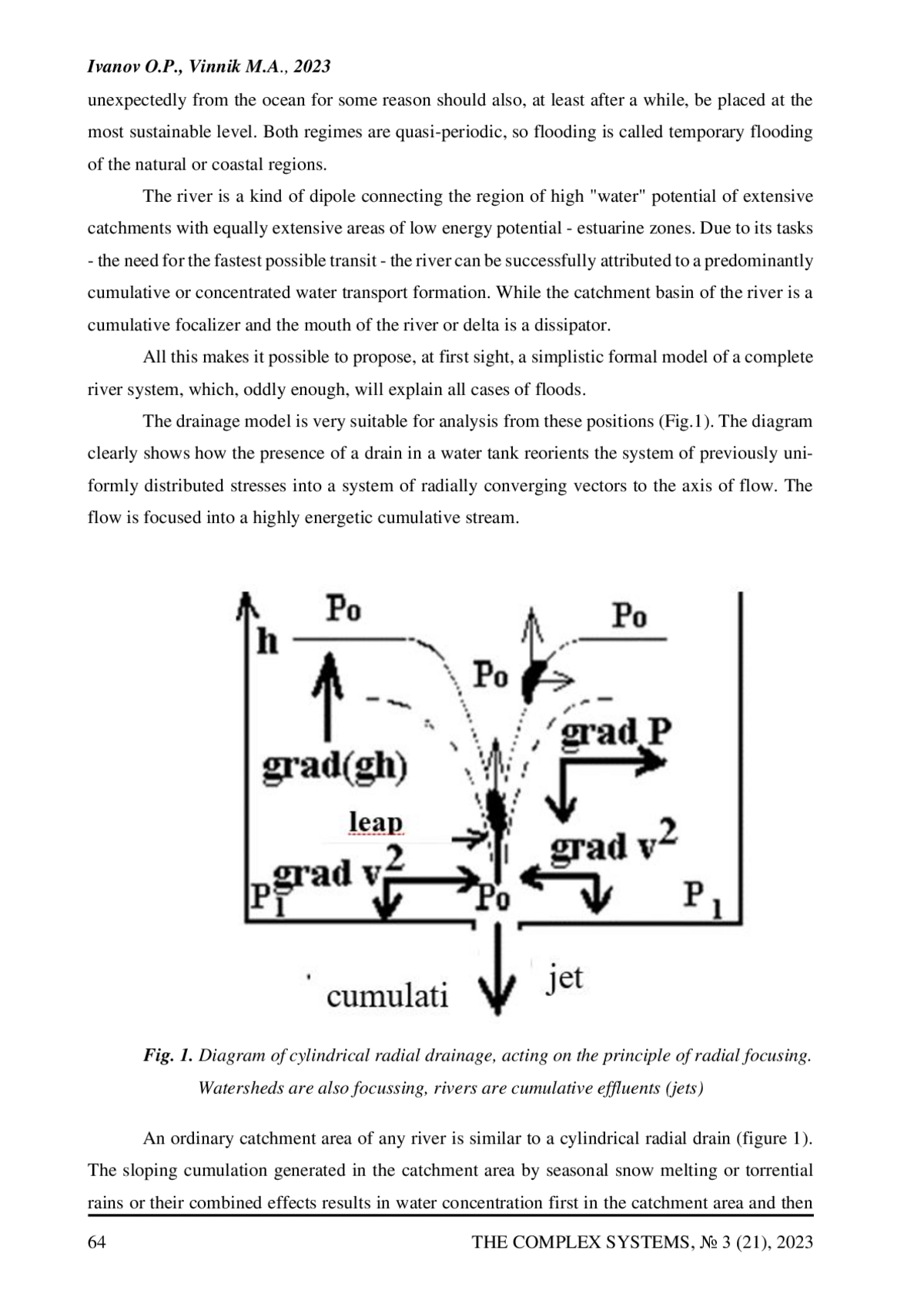 The drainage basin, river, and delta zone together constitute a complex open dipole system. In it, the watershed subsystem plays the role of an accumulator of high potential energy of water, the channel zones are cumulative transit zones of the potential energy of water, and the estuarine zones are dissipators of this energy, minimizing its level to the maximum. It is convenient to represent such a system as a “drainage” model, which allows us to consider all types of floods in its various sections and at the same time give a comparative assessment of the potential of river systems as dipole formations from tectonic positions.