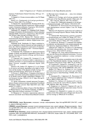 14. Ященко И.Г., Крупицкий В.В., Полищук Ю.М. Особенности изменения физико-химических свойств нефтей в связи с большими глубинами. Георесурсы. 2021;23(3):99108. DOI: 10.18599/grs.2021.3.13