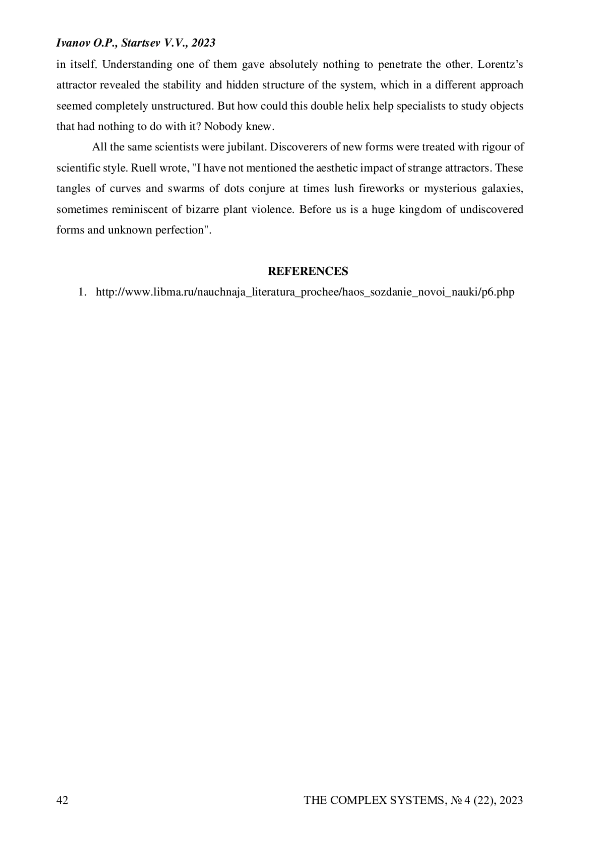 The discoverers of new forms compromised the rigor of the scientific style. Ruelle wrote: “I have not mentioned the aesthetic impact of strange attractors. These tangles of curves and swarms of dots sometimes conjure up magnificent fireworks or mysterious galaxies, sometimes they resemble a bizarre riot of plants. Before us is a vast realm of undiscovered forms and unknown perfection.
