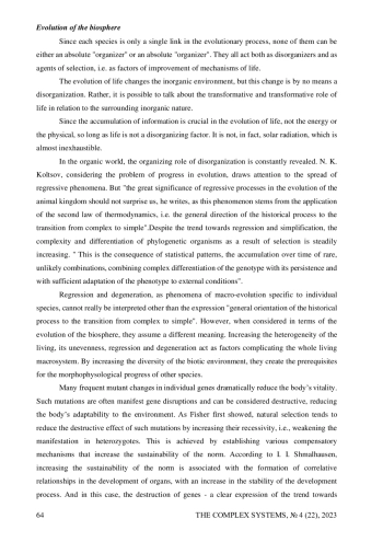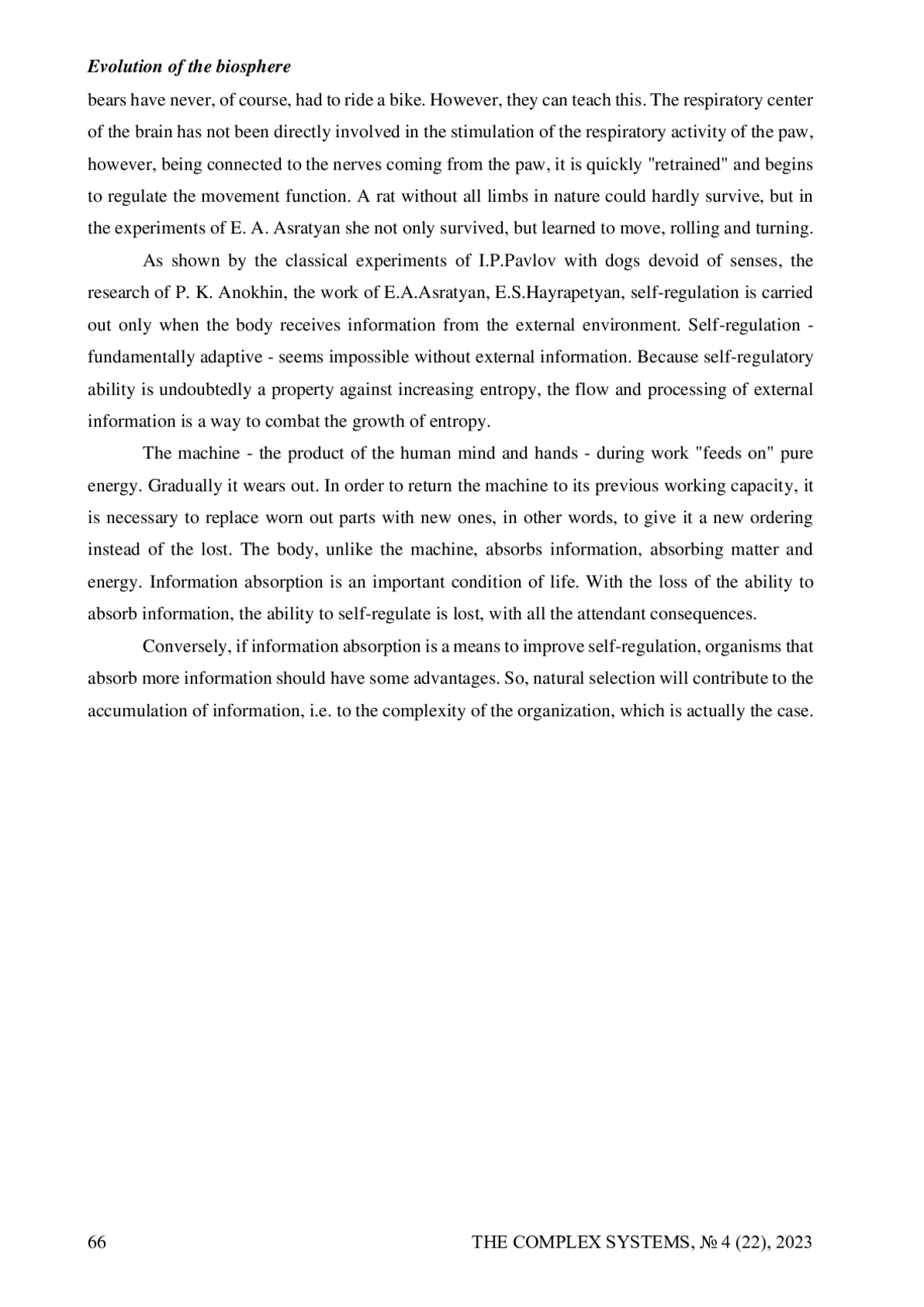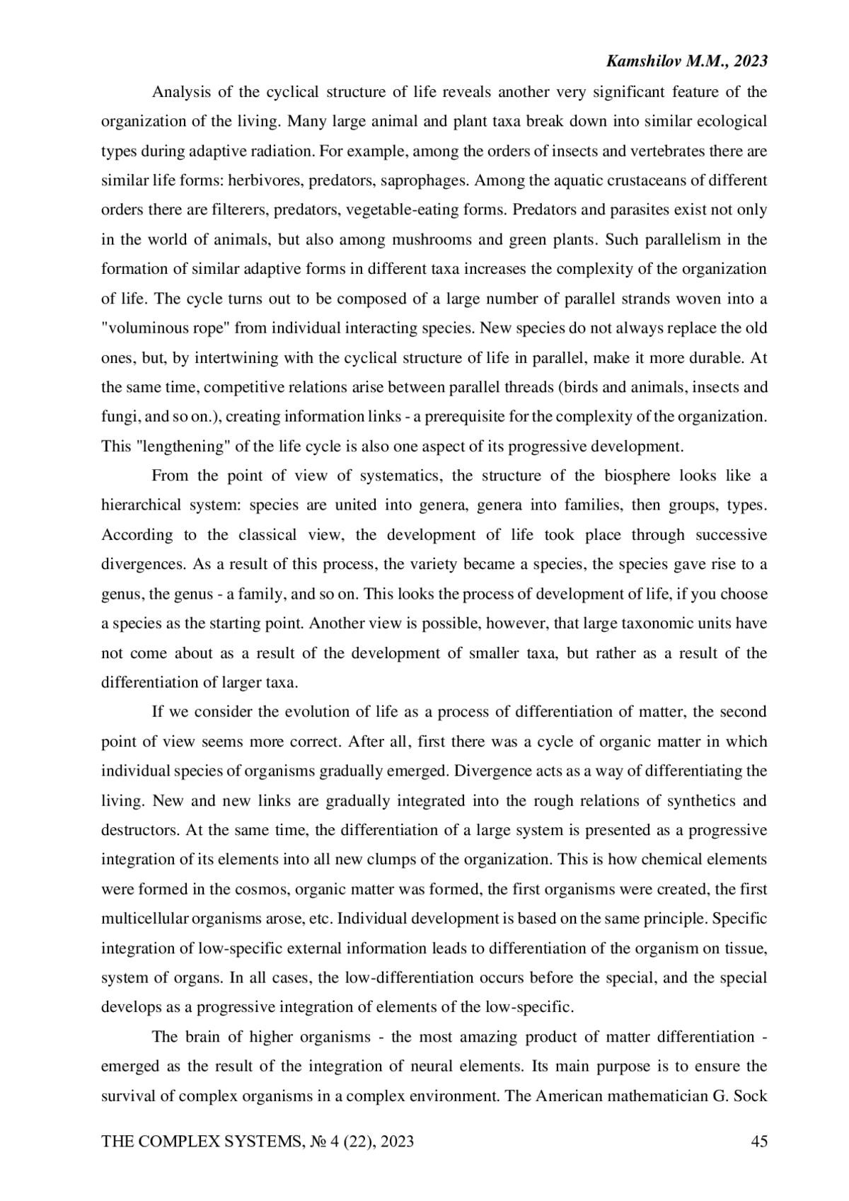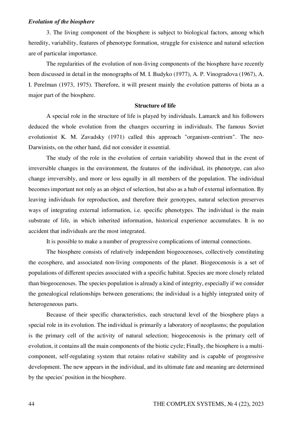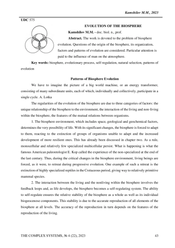 КАМШИЛОВ М. М. EVOLUTION OF THE BIOSPHERE // THE COMPLEX SYSTEMS. 2023. №4 (22)