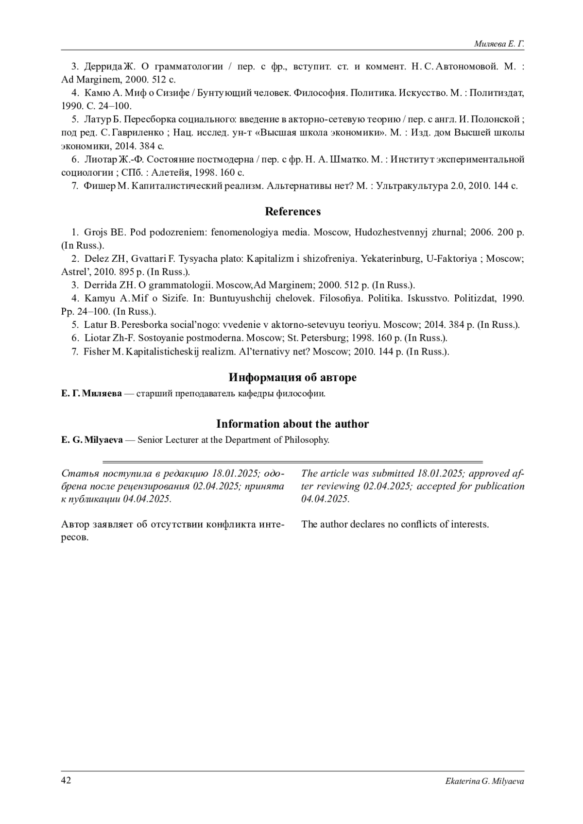 2. Деррида Ж. О грамматологии / пер. с фр., вступит. ст. и коммент. Н. С. Автономовой. М.: Ad Marginem, 2000. 512 с. EDN: SMWHKZ