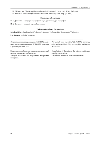 2. Денискин С. А., Крупнов И. А. Онтологические и гносеологические аспекты Русской Северной Традиции // Вестник Челябинского государственного университета. 2021. № 8 (454). С. 62-67.