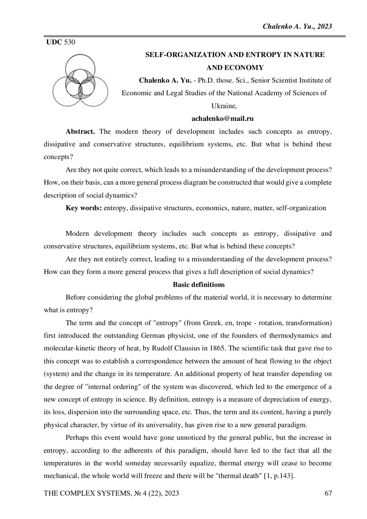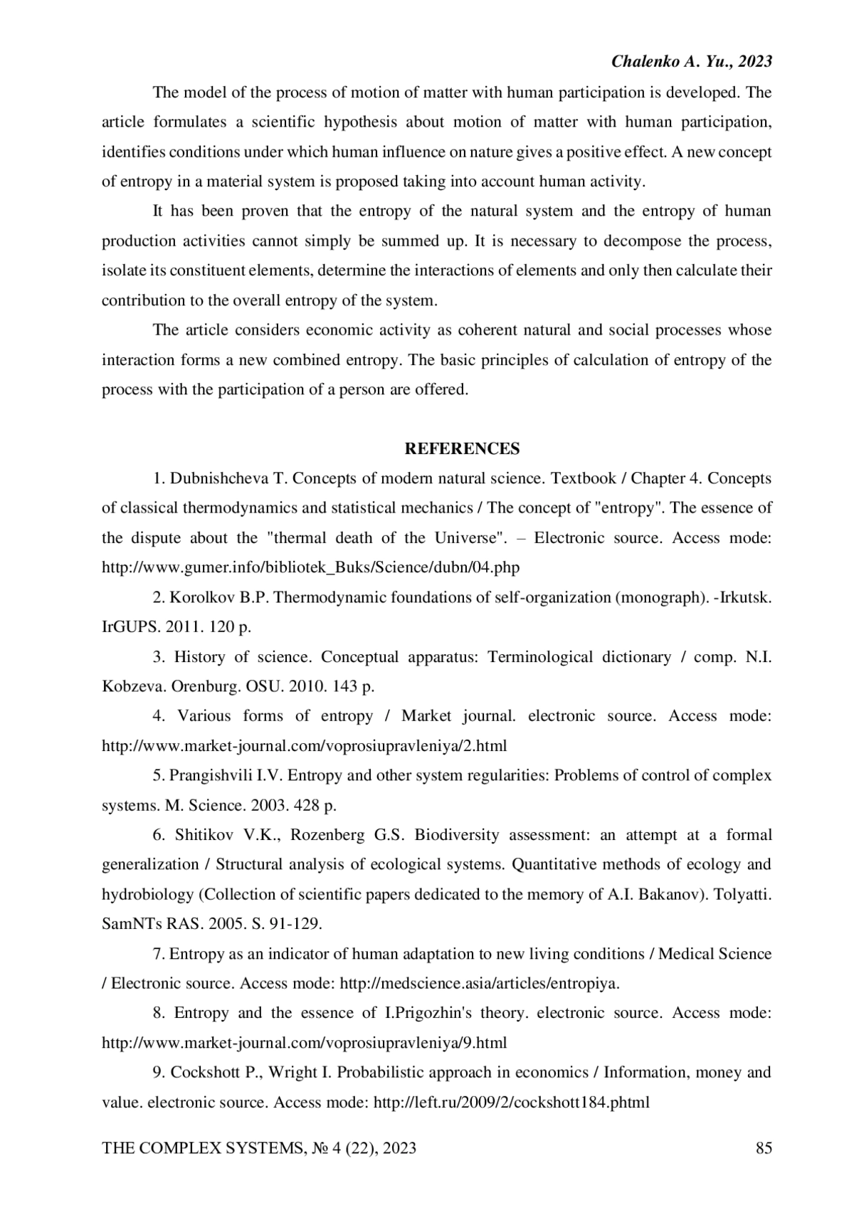 8. Entropy and the essence of I.Prigozhin’s theory. electronic source. Access mode: http://www.market journal.com/voprosiupravleniya/9.html