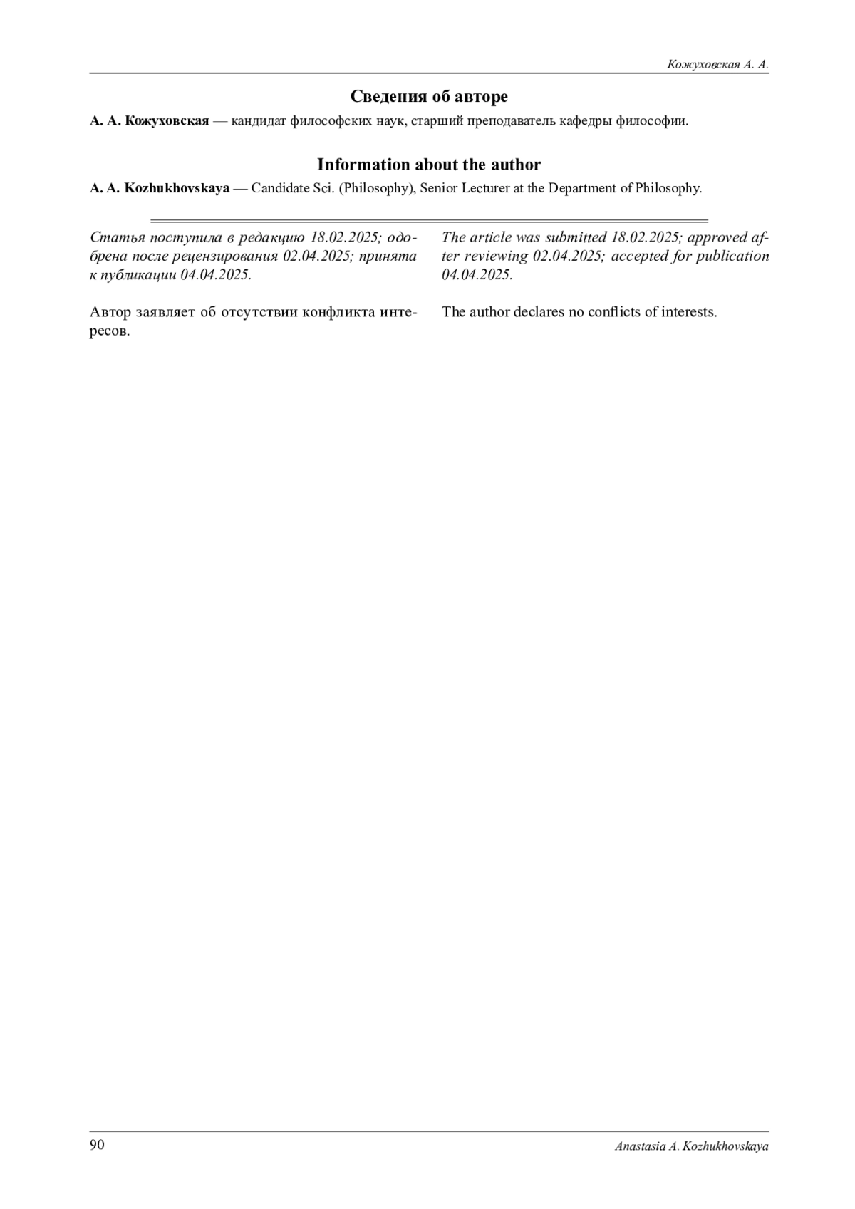 В статье за разнообразием концепций самоутверждения человека в истории западной философии, за изменением в предмете, целях, характеристиках самоутверждения выявляется общая тенденция в представлениях о нём. Содержательно эта тенденция обнаруживает связь между осмыслением феномена и сущности самоутверждения и представлениями о полноте и целостности человеческого существования. И то, и другое различным образом проблематизировалось, оставаясь актуальным в каждый конкретный исторический период. Общий социокультурный контекст, мировоззренческие, культурные доминанты конкретной эпохи определяли основания понимания самоутверждения человека. При этом могут быть выделены две стороны: внутренняя и внешняя. В первом случае самоутверждение связано с внутренней потребностью понять себя как некую целостность, во втором - со способностью и возможностью быть принятым другими. В статье представлены следующие позиции в представлениях о самоутверждении человека: 1) концепция самоутверждения гуманистов, где самоутверждение человека представлено как способность человека быть творцом, дарованная ему Богом; 2) концепция самоутверждения в философии И. Канта, где самоутверждение связано со способностью разума критически относиться к действительности, себе и миру и находиться в состоянии духовного и интеллектуального совершеннолетия; 3) концепции самоутверждения в рамках философии жизни, рассматривающие иррациональные начала, коренящиеся в природе человека и стимулирующие его к активной деятельности; 4) концепция самоутверждения человека в контексте фрейдомарксизма, где оно рассматривается в контексте противоречий, укоренённых в существовании человека, возникающих между его природой и миром с его естественными законами; 5) технологическая концепция итальянского социолога Л. Демикелиса о возможности самоутверждения человека в условиях делегирования им технике, технологиям своих творческих интенций, инициативы, свободы и возникающего при этом отчуждения, а также осмысления самоутверждения, как способа противостоять нарастающему отчуждению. В рамках интерпретации идей Л. Демикелиса отмечена позиция исследователя, согласно которой, в отличие от кантовской установки в Новое время на самостоятельность, совершеннолетие и рефлексивность разума, люди современности утратили способность осмысленно относиться к процессам, происходящим в виртуальном и информационном пространстве, которое характеризуется исследователем как технокапитализм, лишились способности мыслить критически во всех сферах своего бытия, ориентируясь на некие виртуальные и цифровые алгоритмы, пробуждающие в них не способность к рефлексии, но к неким условным рефлексам как реакциям на происходящие в цифровом мире процессы и явления. Рассмотрены архетипы Пигмалиона, Прометея и Нарцисса, представленные Л. Демикелисом, фиксирующим актуальное духовное состояние современного человека, не просто погружённого в технологическое и информационное пространство, но и зависимого от него. Позиция Л. Демикелиса свидетельствует о сущностном конфликте между свободой и творческой самореализацией человека как субъекта, обладающего собственной целостностью и ценностью собственного самоутверждающегося разума, и технологиями, доминирующими над человеком и пре
