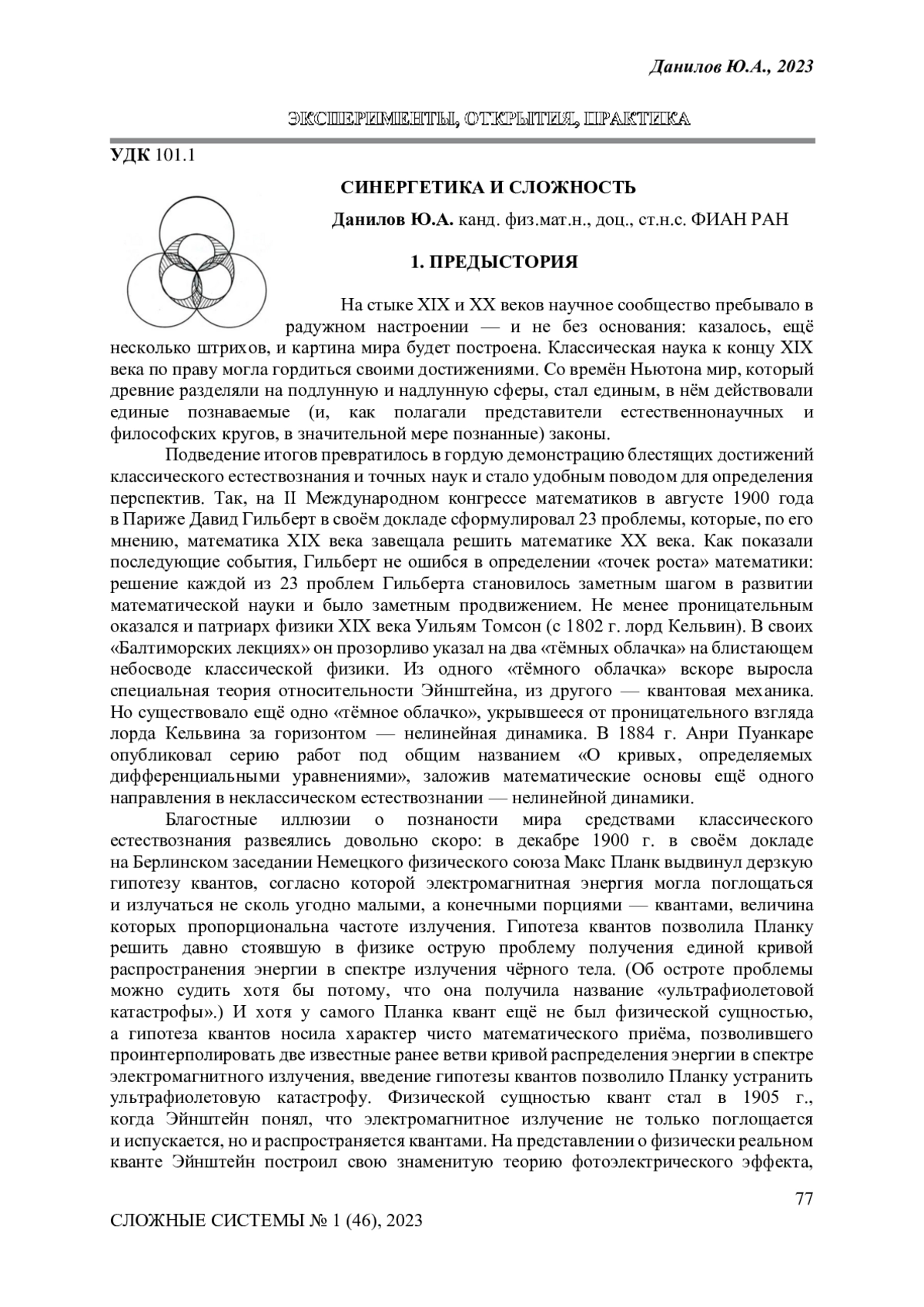 На рубеже 19-го и 20-го веков научное сообщество пребывало в радужном настроении - и не без оснований: казалось, еще несколько штрихов, и картина мира будет выстроена. К концу XIX века классическая наука могла по праву гордиться своими достижениями. Со времен Ньютона мир, который древние делили на подлунную и надлунную сферы, стал единым, единообразно познаваемым (и, как полагали представители естественнонаучных и философских кругов, во многом познаваемым), в нем действовали законы. Подведение итогов превратилось в гордую демонстрацию блестящих достижений классического естествознания и точных наук и стало удобным поводом для определения перспектив. Так, на II Международном конгрессе математиков в августе 1900 года в Париже Давид Гильберт в своем докладе сформулировал 23 задачи, которые, по его мнению, математика 19 века завещала решать математике 20 века. Как показали последующие события, Гильберт не ошибся в определении “точек роста” математики: решение каждой из 23 задач Гильберта стало заметным шагом в развитии математической науки и явилось заметным продвижением вперед. Патриарх физики девятнадцатого века Уильям Томсон (с 1802 года лорд Кельвин) был не менее проницателен. В своих “Балтиморских лекциях” он проницательно указал на две “темные тучи” на сияющем небосклоне классической физики. Из одного “темного облака” вскоре выросла специальная теория относительности Эйнштейна, из другого - квантовая механика.