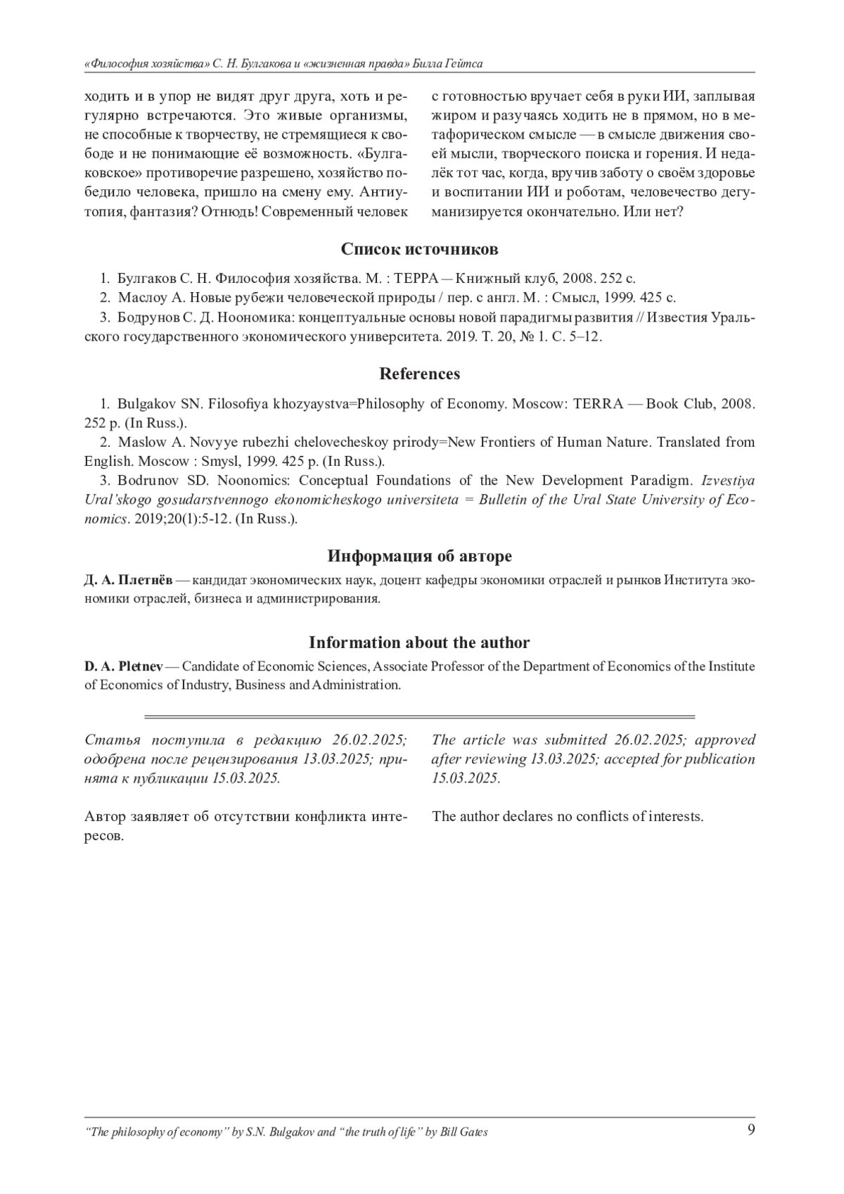 3. Бодрунов С. Д. Ноономика: концептуальные основы новой парадигмы развития // Известия Уральского государственного экономического университета. 2019. Т. 20, № 1. С. 5-12. EDN: YYSIMH