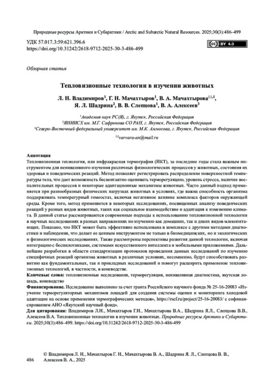 20. Verduzco-Mendoza A., Olmos-Hernández A., BuenoNava A., et al. Thermal imaging in biomedical research: a noninvasive technology for animal models. Frontiers in Veterinary Science. 2025;12:1544112. DOI: 10.3389/fvets.2025.1544112