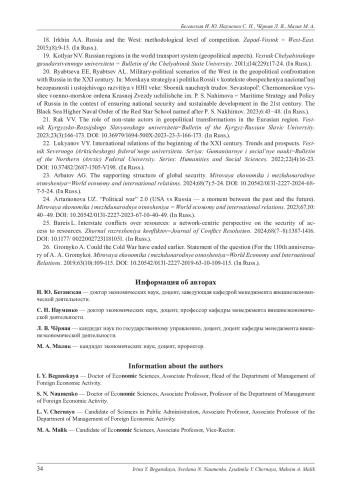 23. Арбатов А. Г. Несущая конструкция глобальной безопасности // Мировая экономика и международные отношения. 2024. Т. 68, № 7. С. 5-24. DOI: 10.20542/0131-2227-2024-68-7-5-24 EDN: RHXDIW