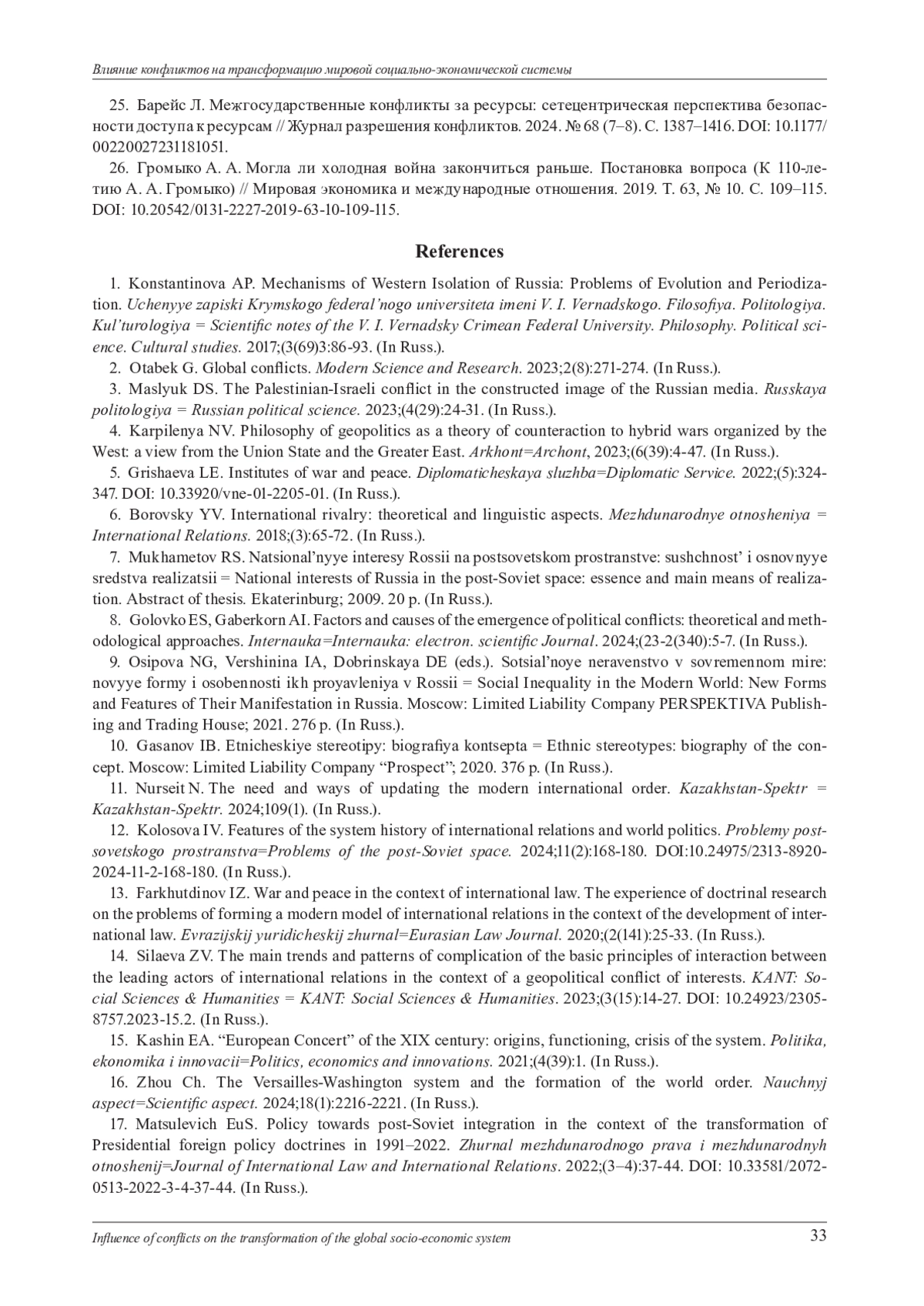25. Барейс Л. Межгосударственные конфликты за ресурсы: сетецентрическая перспектива безопасности доступа к ресурсам // Журнал разрешения конфликтов. 2024. № 68 (7-8). С. 1387-1416. DOI: 10.1177/00220027231181051