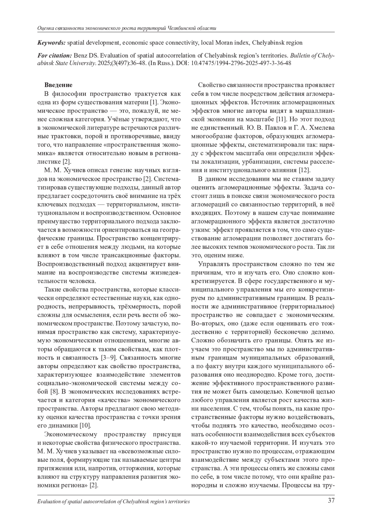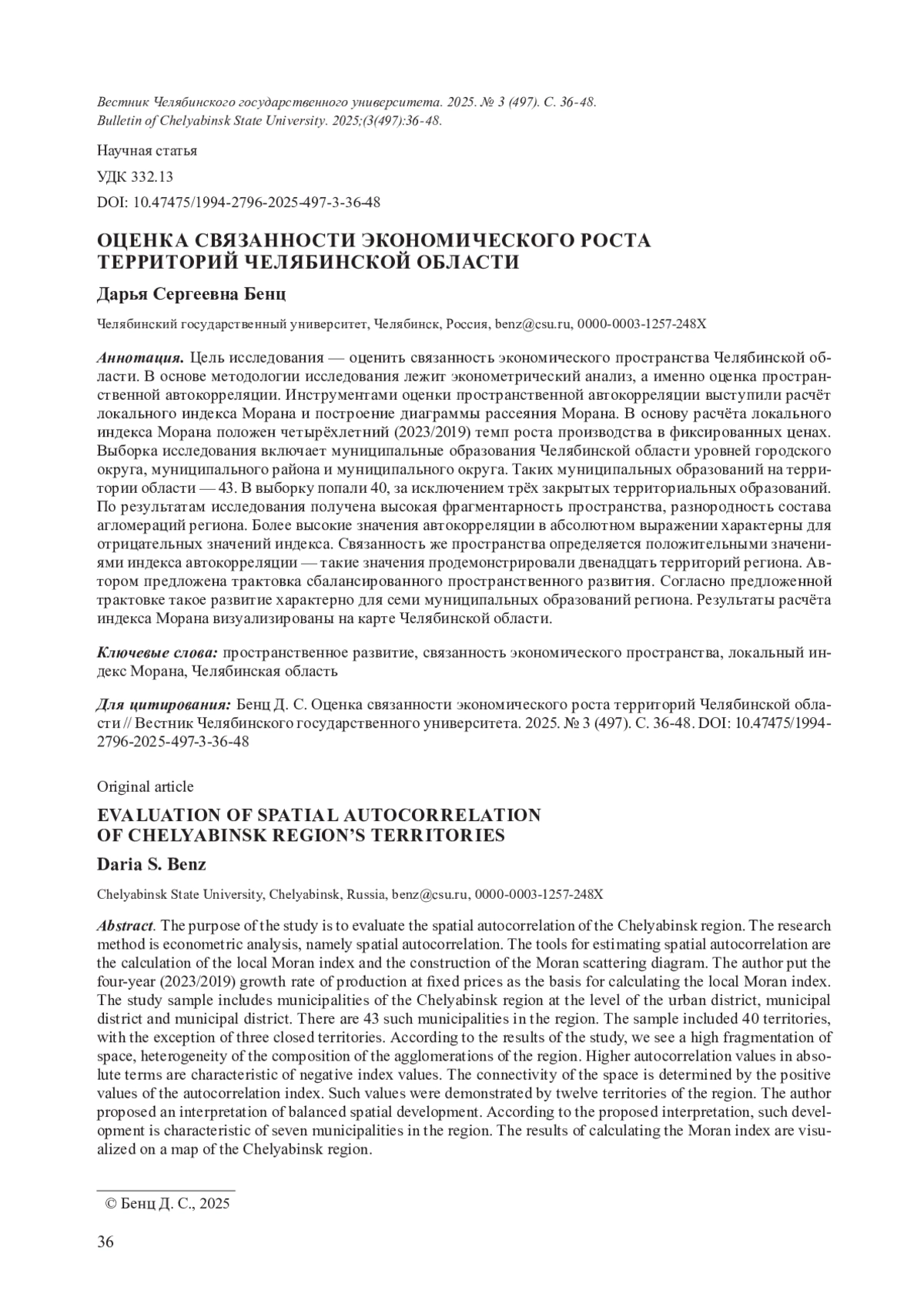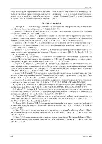15. Бенц Д. С. Оценка неравномерности экономического пространства Челябинской области // Вестник Челябинского государственного университета. 2024. № 12 (494). С. 39-46. DOI: 10.47475/1994-27962024-494-12-39-46