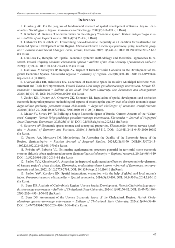 5. Данилова И. В., Савельева И. П., Резепин А. В. Влияние межтерриториальной связанности на развитие экономического пространства регионов // Экономика региона. 2022. Т. 18, В ып. 1. С. 31-48. DOI: 10.17059/ekon.reg.2022-1-3 EDN: VWTXKK