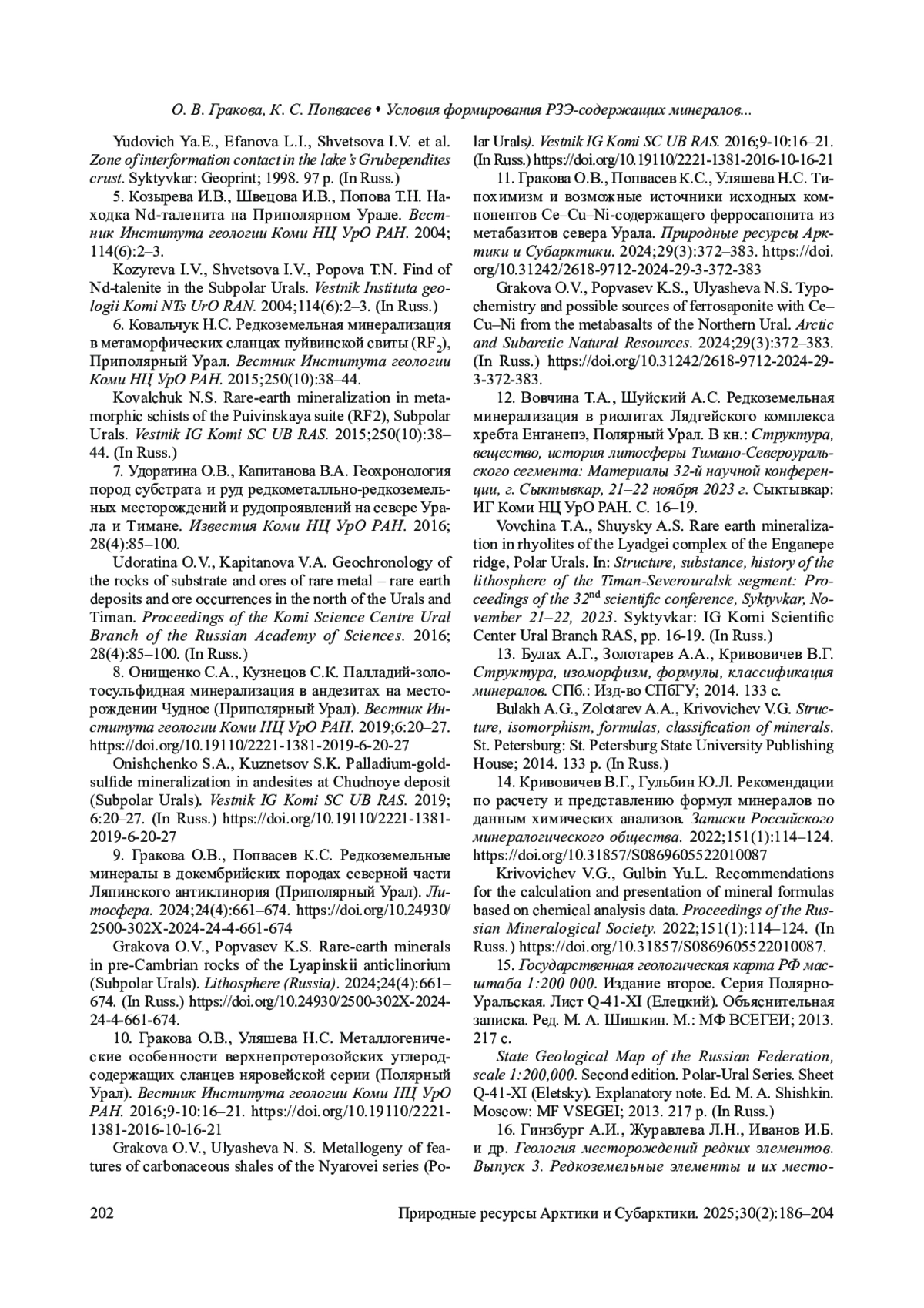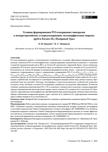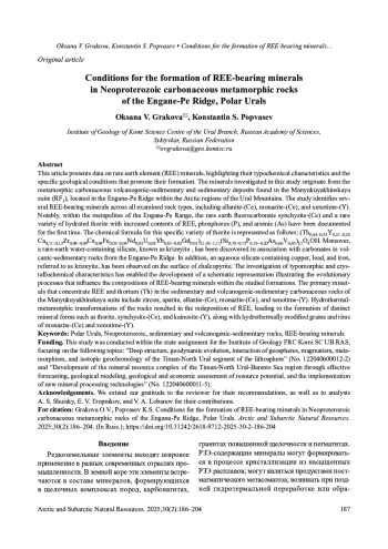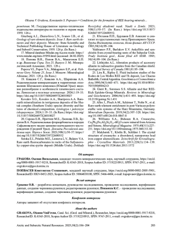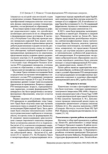 9. Гракова О.В., Попвасев К.С. Редкоземельные минералы в докембрийских породах северной части Ляпинского антиклинория (Приполярный Урал). Литосфера. 2024;24(4):661-674. DOI: 10.24930/2500-302X-2024-24-4-661-674