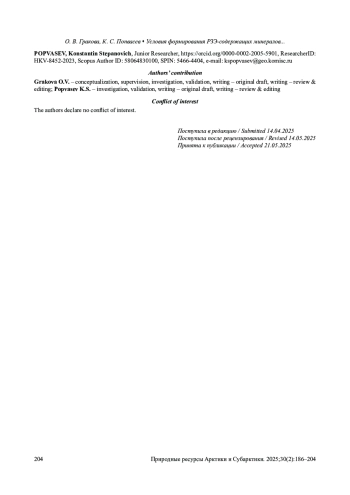6. Ковальчук Н.С. Редкоземельная минерализация в метаморфических сланцах пуйвинской свиты (RF2), Приполярный Урал. Вестник Института геологии Коми НЦ УрО РАН. 2015;250(10):38-44. EDN: VBJPNP