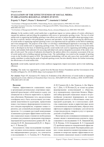 СОЦИАЛЬНЫЕ МЕДИА, РЕГИОНАЛЬНЫЕ СПОРТИВНЫЕ МЕРОПРИЯТИЯ, ВОВЛЕЧЕННОСТЬ АУДИТОРИИ, ОЦЕНКА ВОЗДЕЙСТВИЯ, МАРКЕТИНГ СПОРТИВНЫХ МЕРОПРИЯТИЙ, ЭФФЕКТИВНОСТЬ