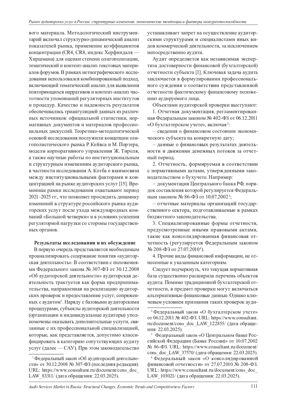 18. Федеральный закон “Об аудиторской деятельности” от 30.12.2008 № 307-ФЗ (последняя редакция).URL: https://www.consultant.ru/document/cons_doc_LAW_83311/ (дата обращения: 22.03.2025).