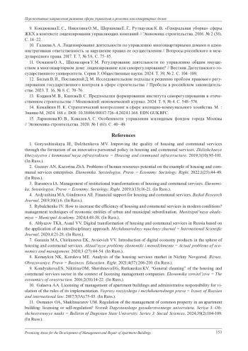 9. Кондюкова Е. С., Никитина О. М., Шершнева Е. Г., Руткаускас К. В. “Генеральная уборка” сферы ЖКХ в контексте лицензирования управляющих компаний // Экономика строительства. 2016. № 2 (38). С. 14-22. EDN: VPBFCZ
