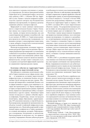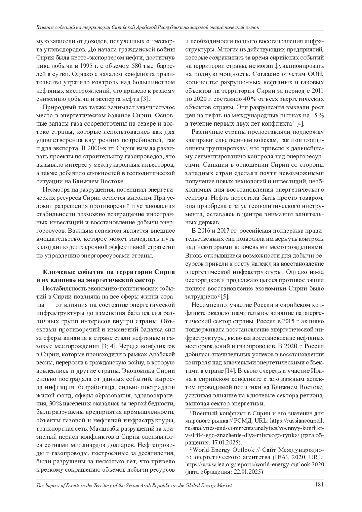 5. Валиахметова Г. Н. Сирийский кризис как отражение трендов развития глобальной энергетики // Tempus et memoria. 2016. Т. 11, № 1. С. 81-90. EDN: VXDUYX