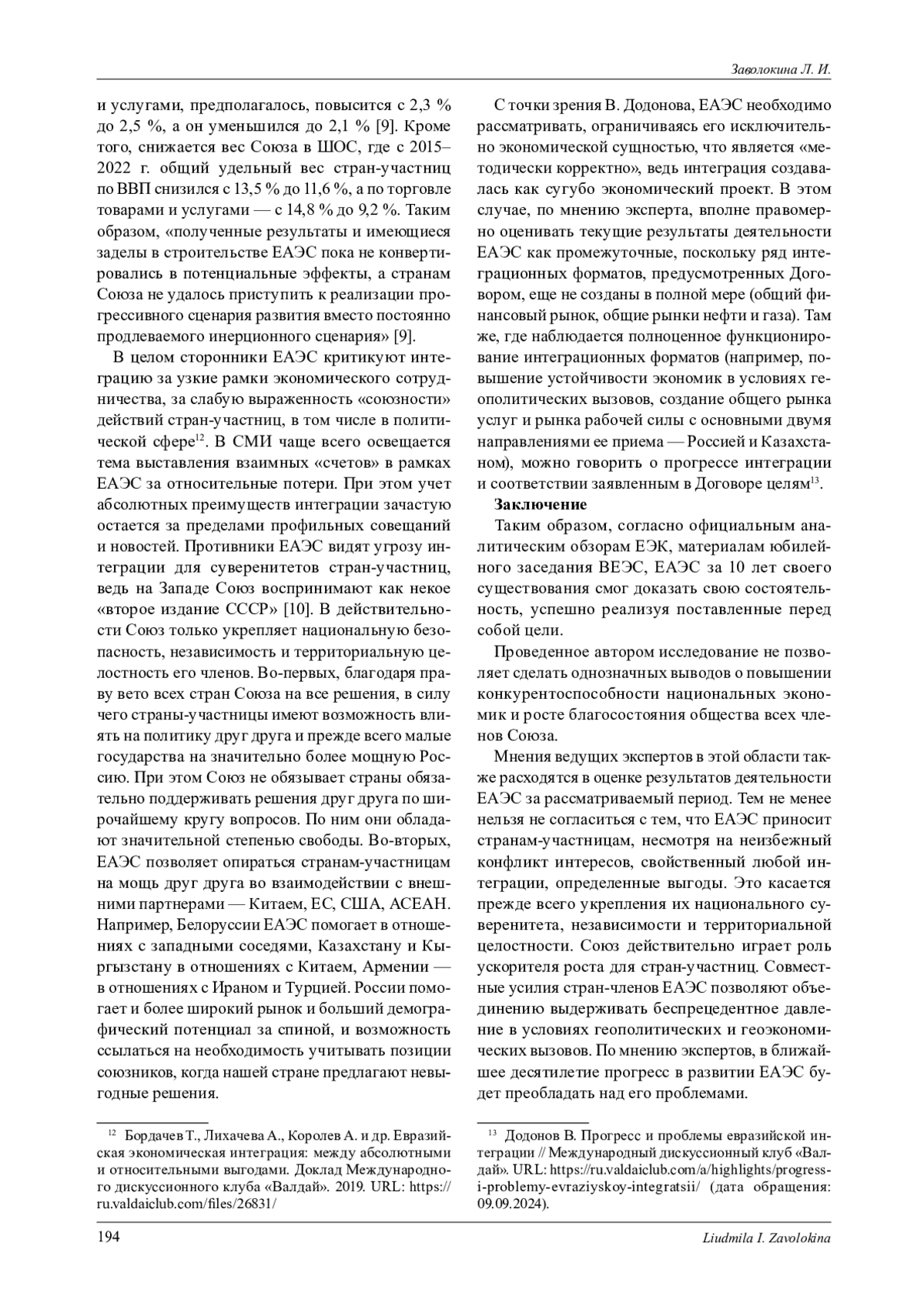 21. Бордачев Т., Лихачева А., Королев А. и др. Евразийская экономическая интеграция: между абсолютными и относительными выгодами. Доклад Международного дискуссионного клуба “Валдай”. 2019. URL: https://ru.valdaiclub.com/fi les/26831. EDN: BXJTZV