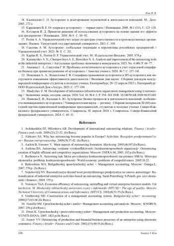 24. Панкова Е. И., Кальная А. Ю. Аутсорсинг бизнес-процессов в деятельности компаний: особенности инновационного аутсорсинга // Университетская наука - региону: Сборник материалов XI (68) ежегодной научно-практической конференции преподавателей, студентов и молодых ученых Северо-Кавказского федерального университета, Ставрополь, 01 апреля 2024 г. Ставрополь: Северо-Кавказский федеральный университет, 2024. С. 48-51. EDN: QKLXAE