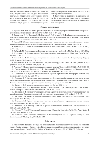 1. Афанасьева С. Н. Функции и признаки термина как основа дифференциации термина/нетермина в современном русском языке // Вестник ЧГУ 2018. № 2. С. 196-202. EDN: XQWUXB