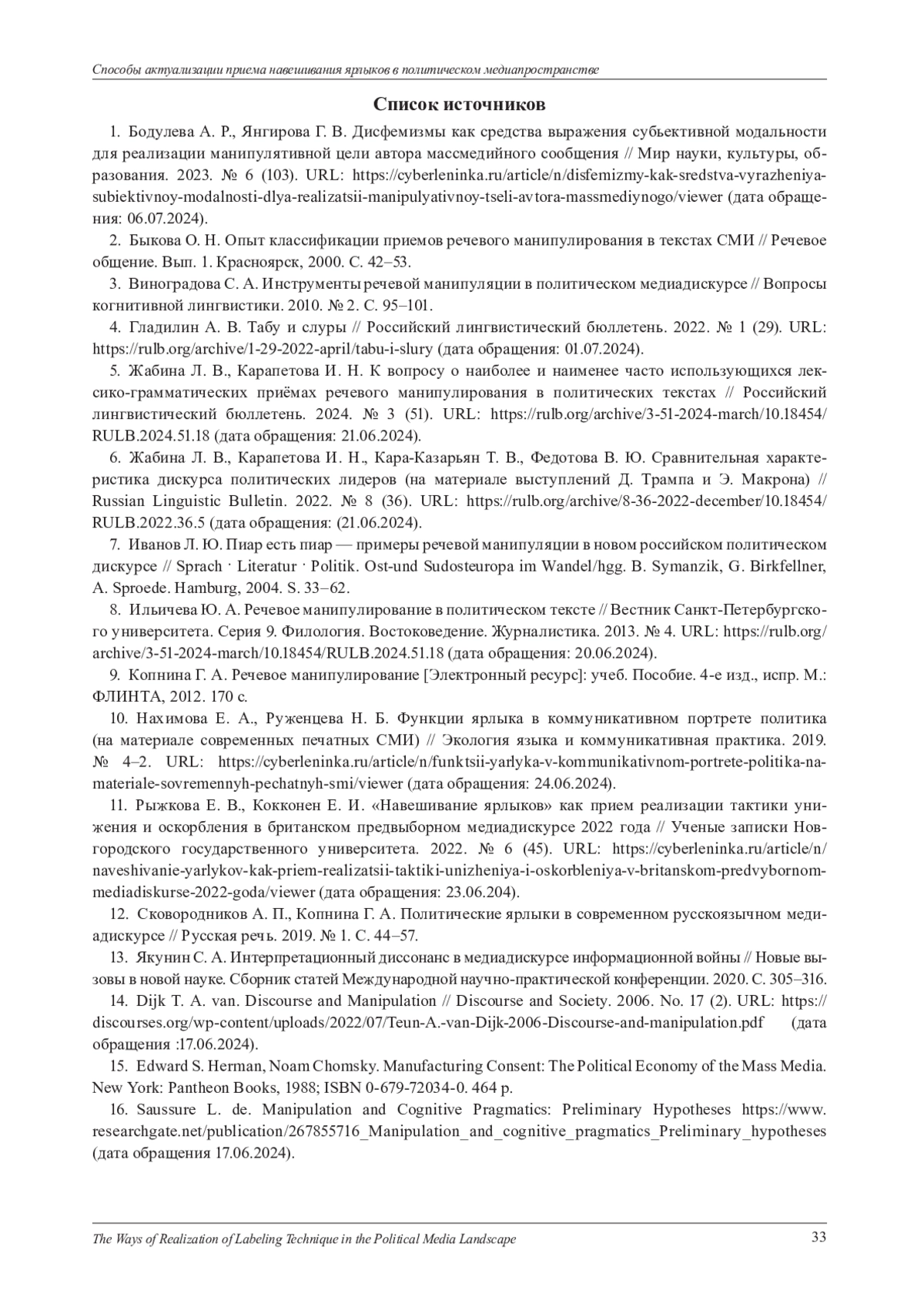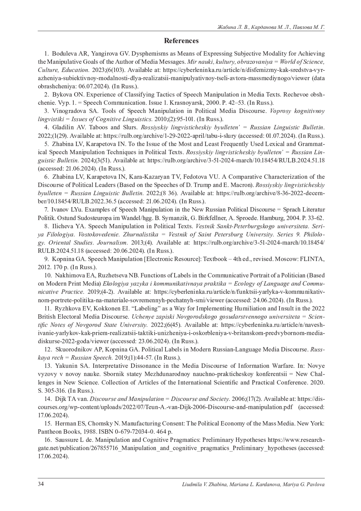 16. Saussure L. de. Manipulation and Cognitive Pragmatics: Preliminary Hypotheses https://www.researchgate.net/publication/267855716_Manipulation_and_cognitive_pragmatics_Preliminary_hypotheses (дата обращения 17.06.2024).