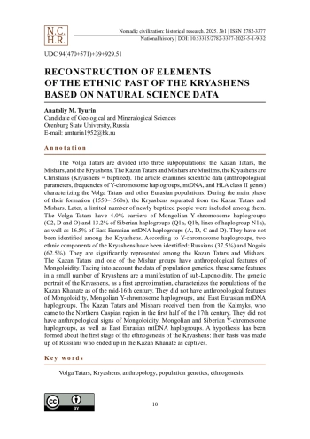 39. Тюрин, А.М. (2017а) Калмыки, караногайцы, кубанские ногайцы и крымские татары - геногеографический и геногенеалогический аспекты. Журнал фронтирных исследований. 2. 7-29.