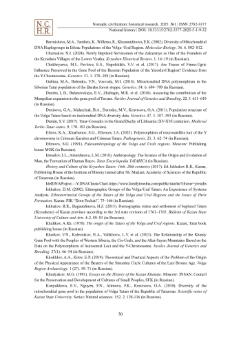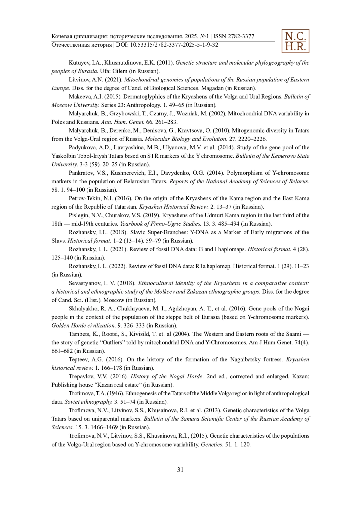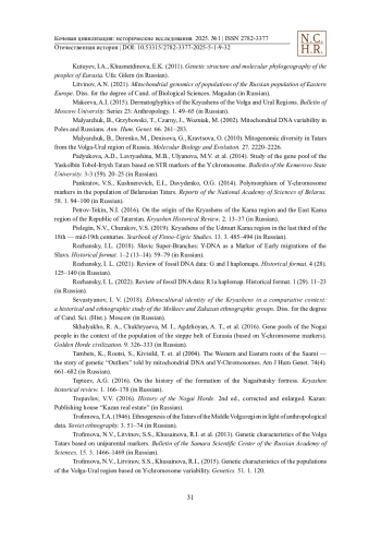 37. Трофимова, Н.В., Литвинов, С.С., Хусаинова, Р.И. и др. (2013). Генетическая характеристика поволжских татар по данным об однородительских маркерах. Известия Самарского научного центра Российской академии наук. 15. 3. 1466-1469.