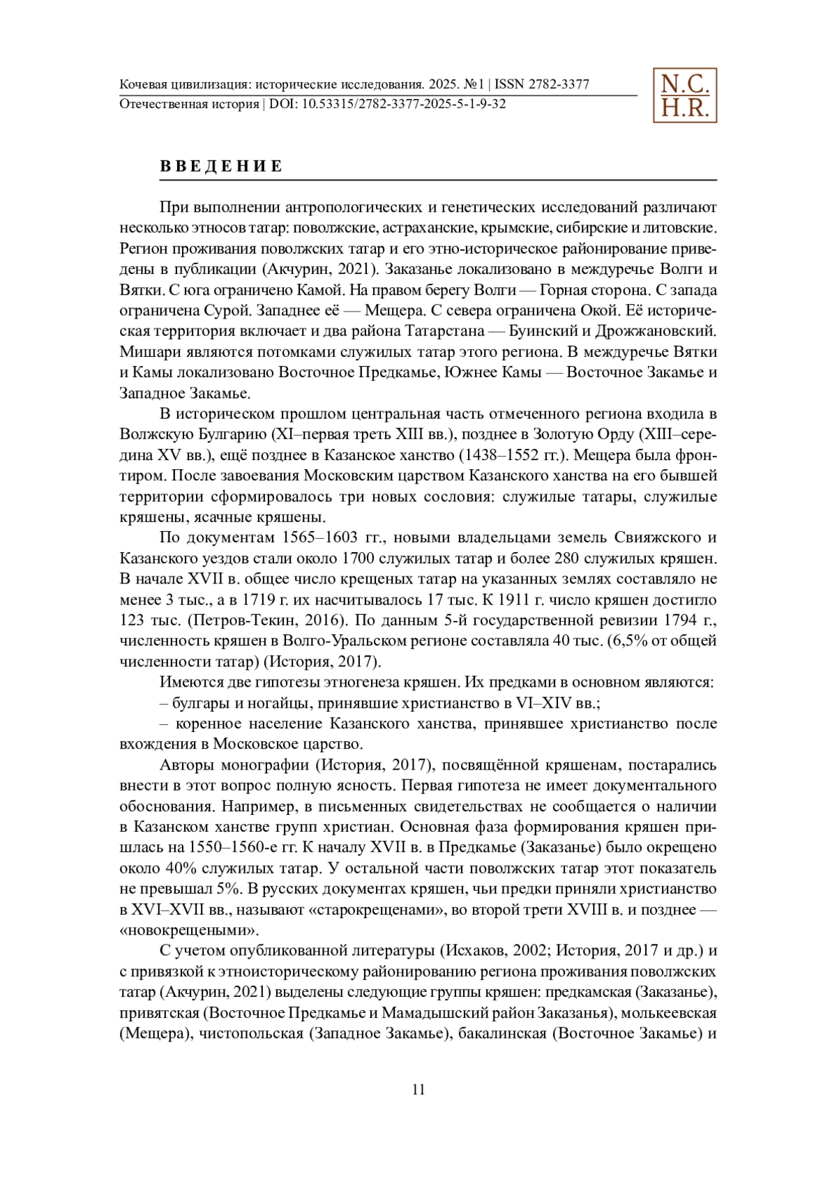 50. Чумаков, Н.И. (2024). Служилые новокрещены Заказанья как одни из основателей кряшенских деревень нижней Вятки. Кряшенское историческое обозрение. 1. 16-19.