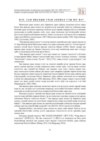 Зам явахын уран зохиол нь хаад ихэс дээдэс, номын мэргэд, түүхэн хүмүүс ихэвчлэн аян замд явсан сонин сайхан үйл явдал, аяллын тэмдэглэлийг бодит баримт мэдээлэл, уран сайхны аргыг хослуулан өгүүлдэг бөгөөд эртний уламжлал нь зөвхөн монгол хэлээр бус, төвөд хэлээр ч ихэд дэлгэрч байсан. Түүнчлэн монголын уран зохиолд энэ төрлийн бүтээлүүд нь шашны үйл ажиллагаа, нийгмийн харилцаа, соёлын солилцоог илтгэн харуулдаг. Энэхүү илтгэлээр Монголын зам явахын уран зохиолын уран сайхны онцлог, түүхэн хөгжлийн талаар судалгааны үндэслэлтэйгээр дэлгэрэнгүй өгүүлэх болно. Зам явахын уран зохиол нь баримтат ба уран сайхны аргыг хослуулж, монгол хүний ертөнцийг үзэх үзэл, сэтгэлийн хөдөлгөөн, мөн бусыг танин мэдэх мэдрэмжийг уран дүрслэлээр баяжуулдаг. Монголын зам явахын уран зохиолын уран сайхны онцлог нь гол төлөв яруу найраглаг байдлаар илэрхийлэгддэг бөгөөд энэ нь уншигчдыг тухайн аяллын уур амьсгалд оруулж, аяллын мэдрэмжийг амилуулдаг. Монголын Зам явахын уран зохиолнь дан ганц газар зүйн зураглал биш, харин тухайн үеийн монгол хүний сэтгэл зүй, нийгмийн харилцааг илэрхийлэх хүчирхэг арга хэрэгсэл болж өгдөг.