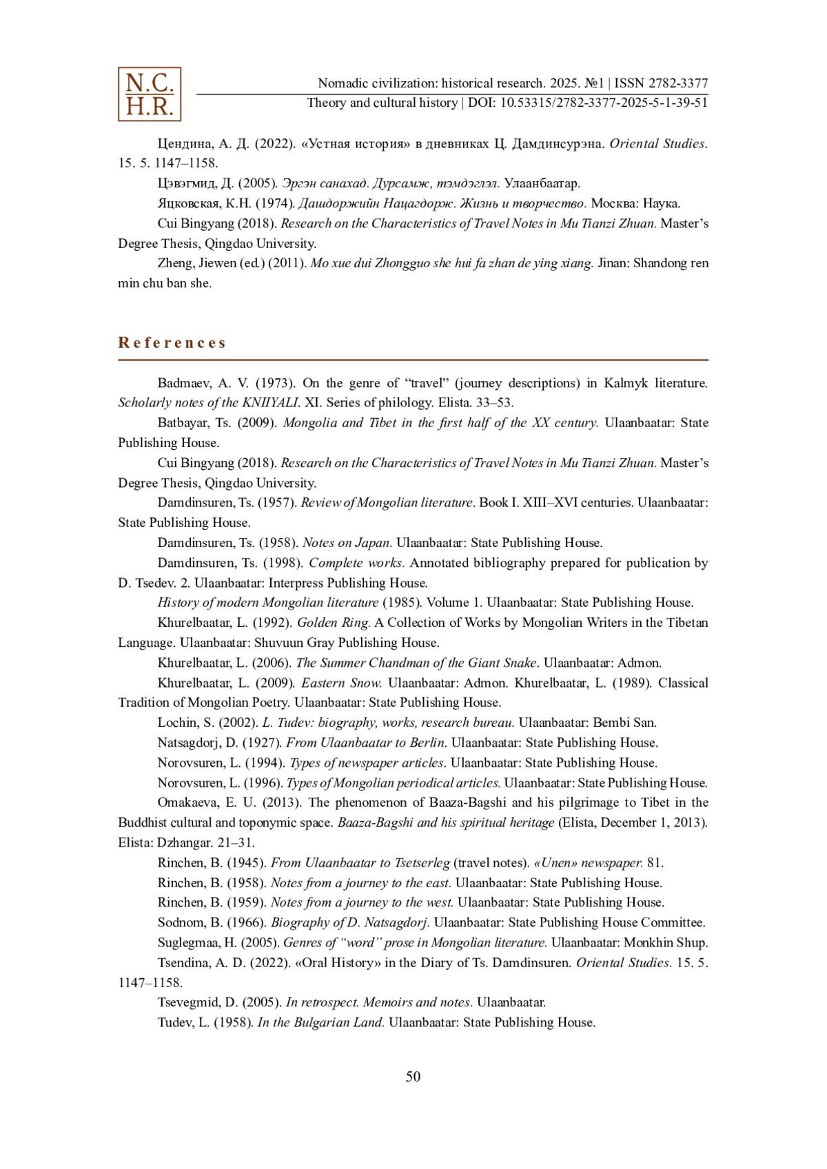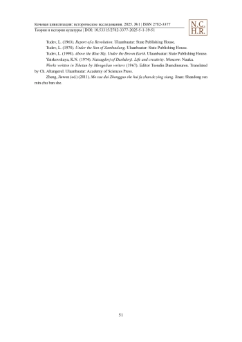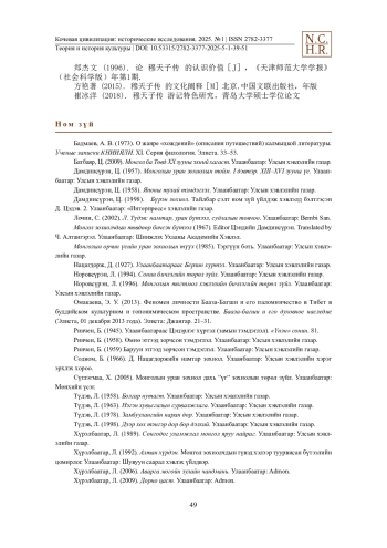 26. Цендина, А. Д. (2022). «Устная история» в дневниках Ц. Дамдинсурэна. Oriental Studies. 15. 5. 1147-1158.