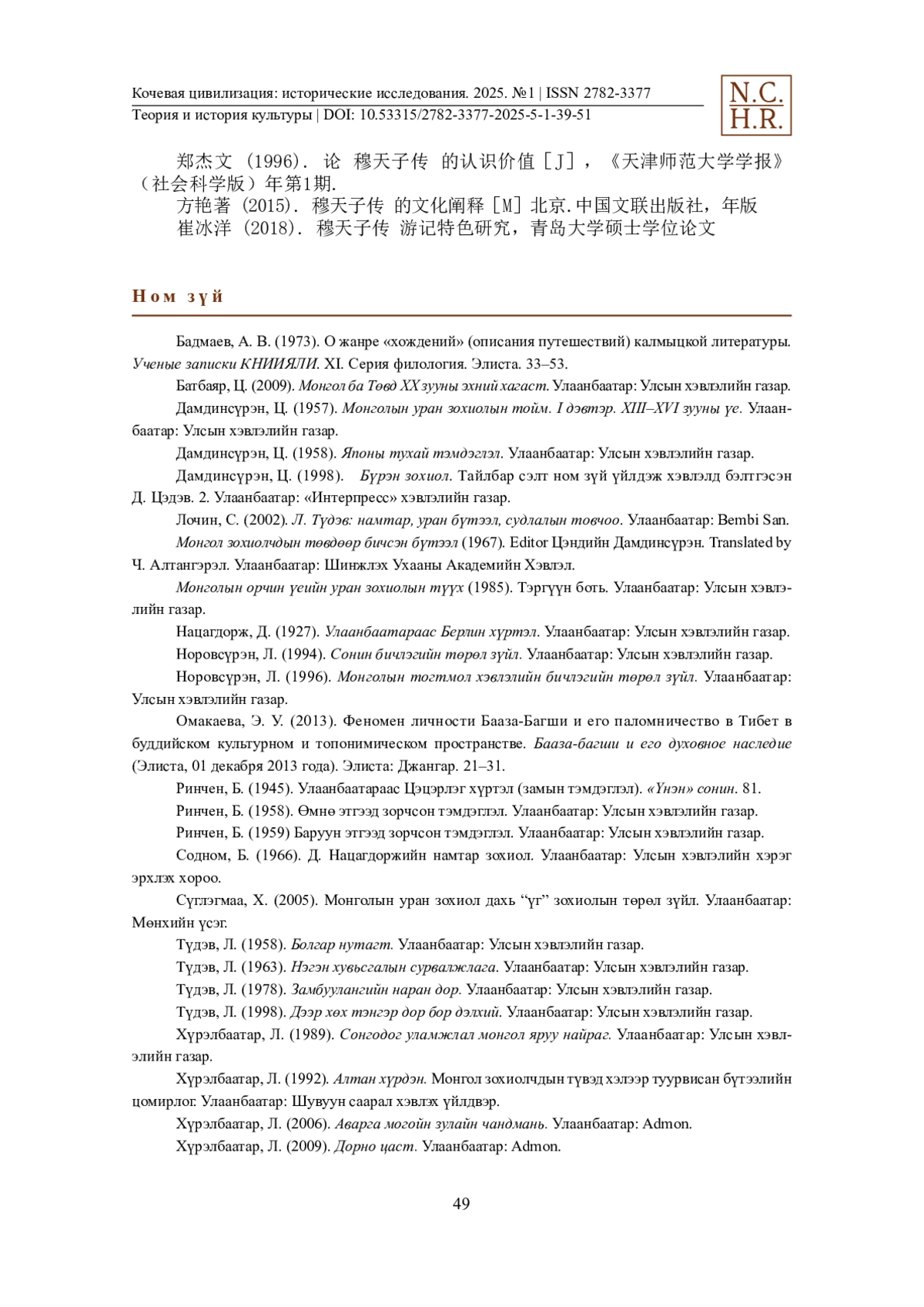 1. Бадмаев, А. В. (1973). О жанре «хождений» (описания путешествий) калмыцкой литературы. Ученые записки КНИИЯЛИ. XI. Серия филология. Элиста. 33-53.