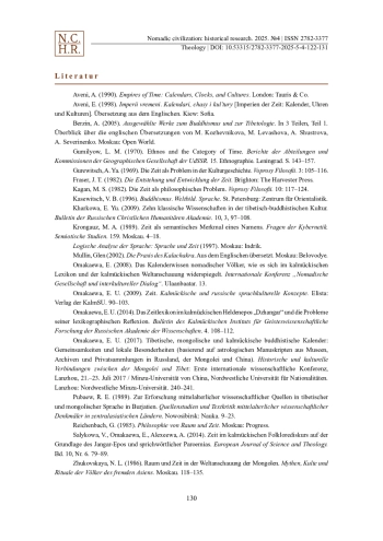 13. Omakaewa, E. (2008). Das Kalenderwissen nomadischer Völker, wie es sich im kalmückischen Lexikon und der kalmückischen Weltanschauung widerspiegelt. Internationale Konferenz „Nomadische Gesellschaft und interkultureller Dialog“. Ulaanbaatar. 13.