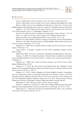 14. Omakaewa, E. U. (2009). Zeit. Kalmückische und russische sprachkulturelle Konzepte. Elista: Verlag der KalmSU. 90-103.