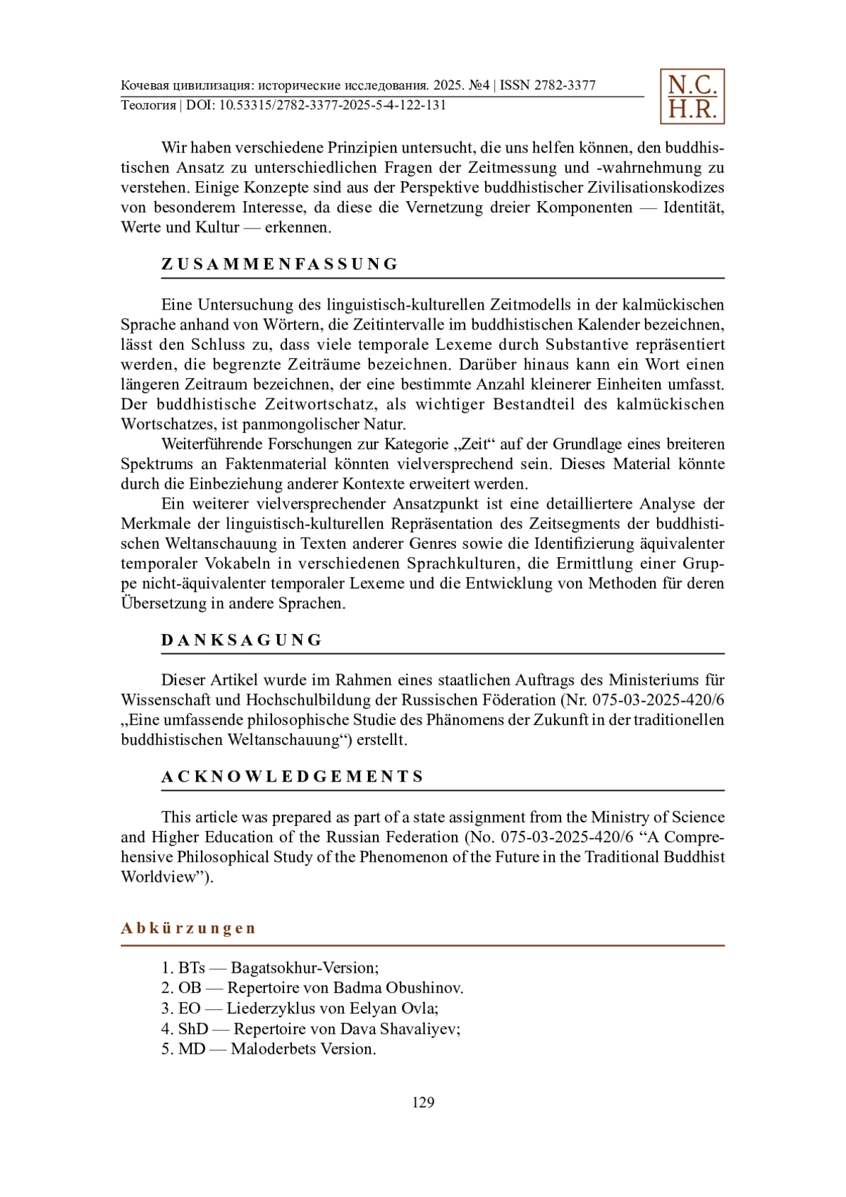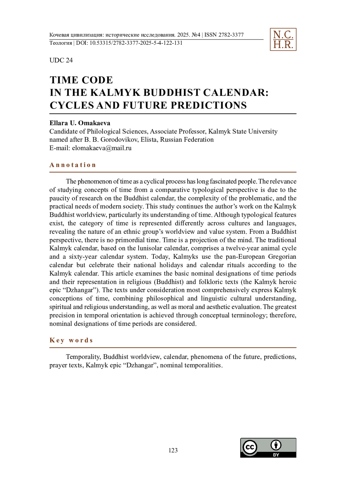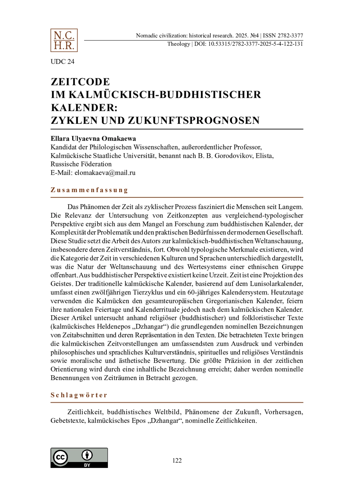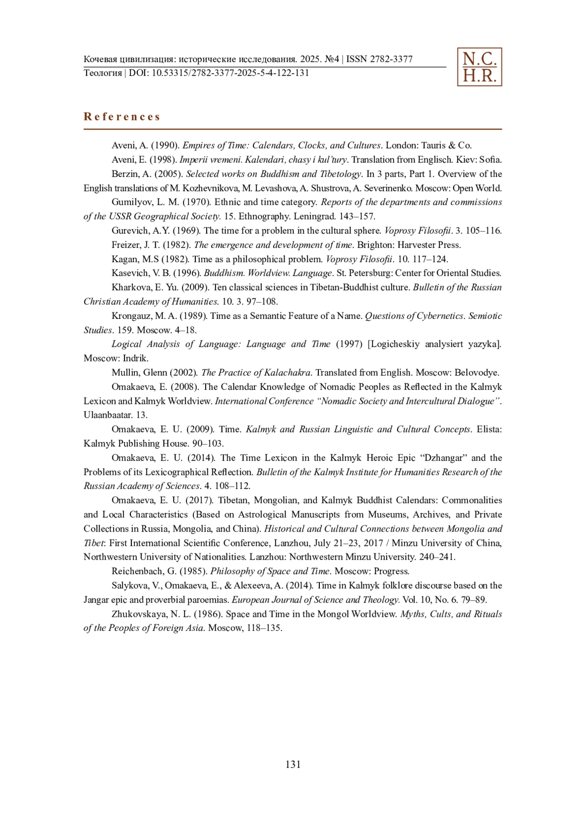 19. Salykowa, V., Omakaewa, E., Alexeewa, A. (2014). Zeit im kalmückischen Folklorediskurs auf der Grundlage des Jangar-Epos und sprichwörtlicher Paroemias. European Journal of Science and Theology. Bd. 10, Nr. 6. 79-89.