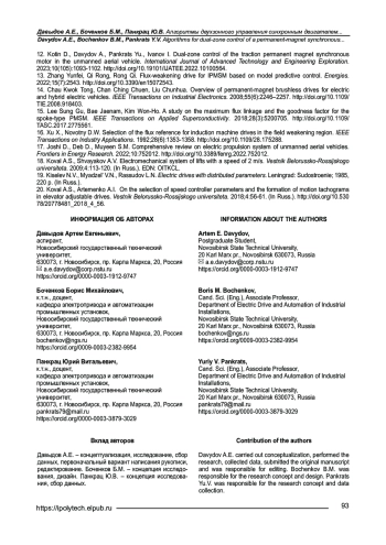 13. Zhang Yunfei, Qi Rong, Rong Qi. Flux-weakening drive for IPMSM based on model predictive control // Energies. 2022. Vol. 15. No. 7. P. 2543. https://doi.org/10.3390/en15072543.
