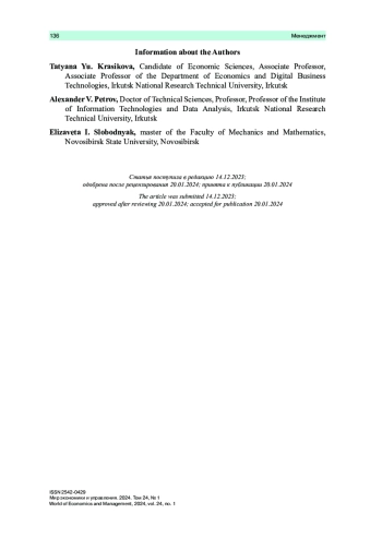 2. Красных С. С. Имитационное моделирование социально-экономических процессов в территориальных системах // Журнал экономической теории. 2020. Т. 17. № 2. С. 503-508. https://doi.org/10.31063/2073-6517/2020.17-2.22