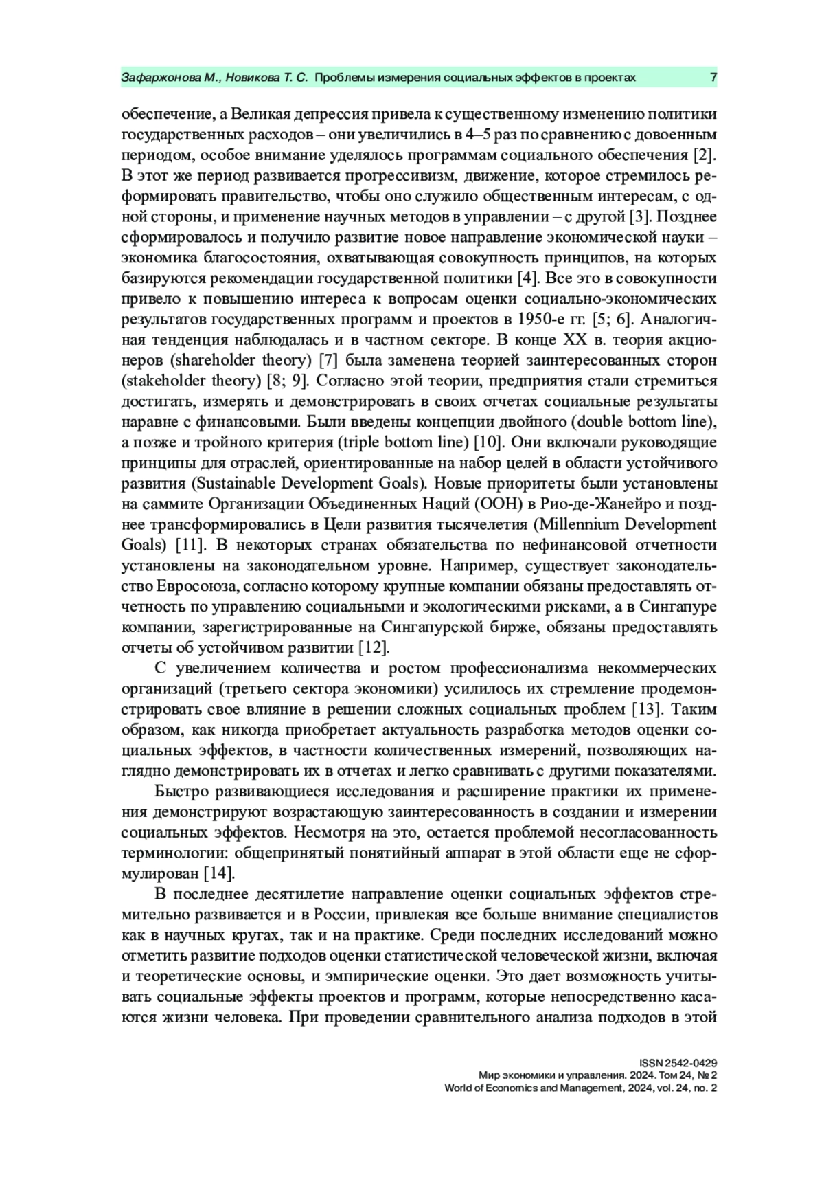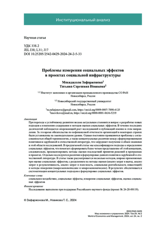 При переходе к устойчивому развитию весьма актуальным становится вопрос о разработке новых подходов к изменению содержания и методов оценки социальных эффектов. В течение последних десятилетий наблюдается опережающий рост исследований и публикаций именно в этом направлении. За это время обязательства по нефинансовой отчетности организаций в некоторых странах были установлены на законодательном уровне. Однако постоянно проявляются проблемы с согласованностью общей терминологии, а также концептуальные различия между сформулированными понятиями в зарубежной и отечественной литературе, что затрудняет получение и обмен знаниями в этой области исследований. В предлагаемой статье мы классифицируем подходы к определению социальных эффектов, что помогает сформировать более четкое представление об этой концепции, следовательно, проанализировать методы оценки последствий принятия решений в программах и проектах. Отдельно исследуются различия в формулировке данного понятия в зарубежной и отечественной литературе. В статье также рассматривается несколько методов, широко применяемых при оценке социальных эффектов, с разделением на методы оценки (анализ затрат и выгод, анализ затрат и результативность, анализ затрат и полезность, социальная рентабельность инвестиций) и методы измерения (макроэкономические и микроэкономические). В результате обеспечивается систематизация концептуальных подходов к формулировке социальных эффектов.