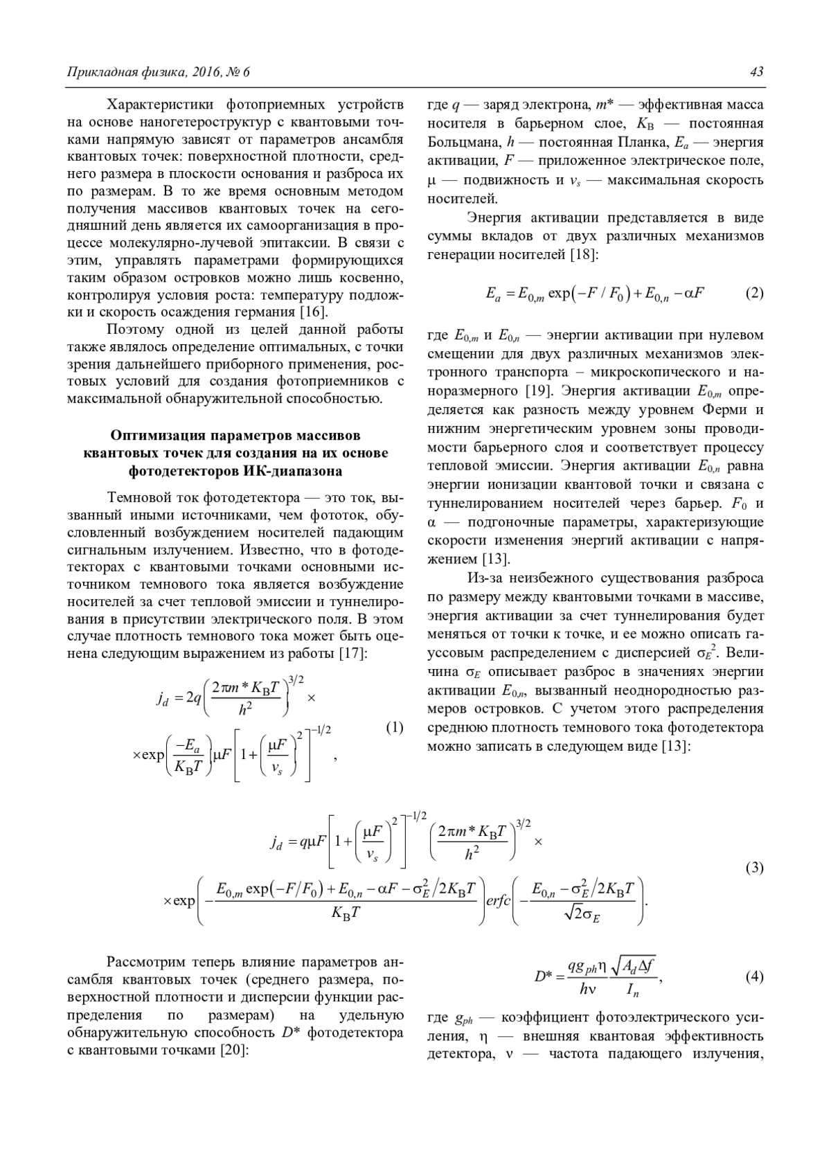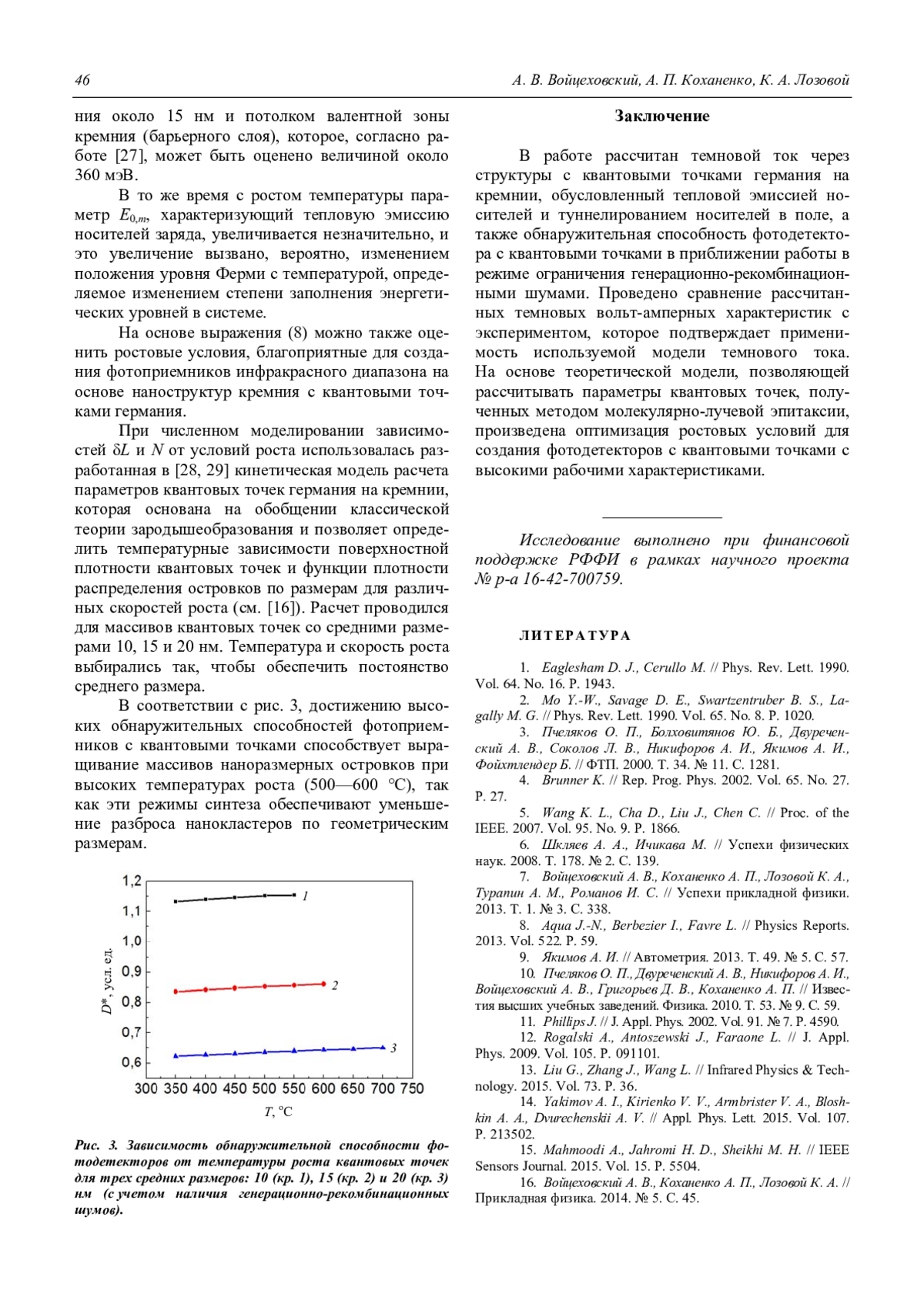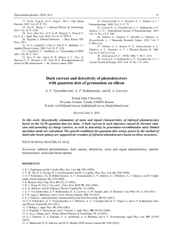 Войцеховский А. В., Коханенко А. П., Лозовой К. А. Темновой ток и обнаружительная способность фотоприемников с квантовыми точками германия на кремнии 42