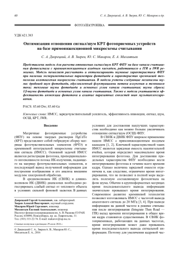 Дворецкий С. А., Зверев А. В., Макаров Ю. С., Михантьев Е. А. Оптимизация отношения сигнал/шум КРТ фотоприемных устройств на базе прямоинжекционной микросхемы считывания 60